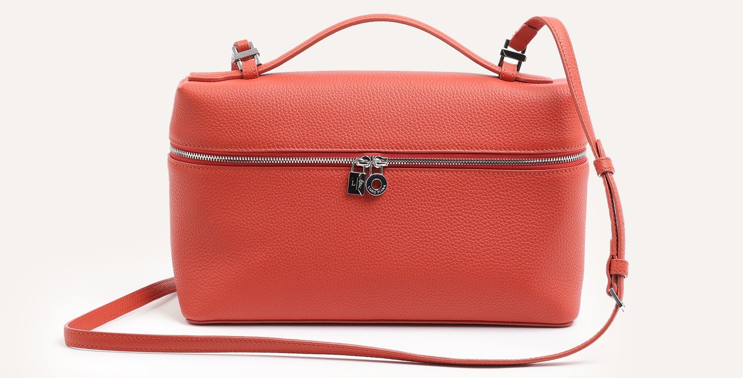The largest size bag available in the Extra Pocket range, the L27 comes in at 6.3” x 10.6” x 3.9”, making it the roomiest option. Considerably larger than its smaller counterparts, the L27 should accommodate your daily necessities. The L27 comfortably sits crossbody and looks just as chic hand-held. Also available in a wide array of leathers, materials, and colors – there’s an Extra Pocket pouch for every closet. As with the other sizes of the Loro Piana Extra Pocket, the vanity style design makes for an effortless look for day and night and everything in between.