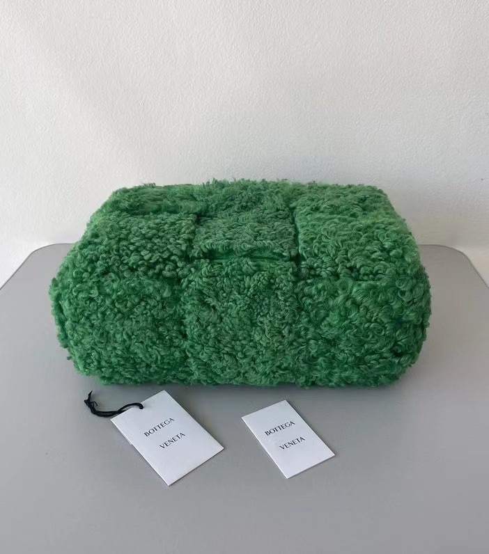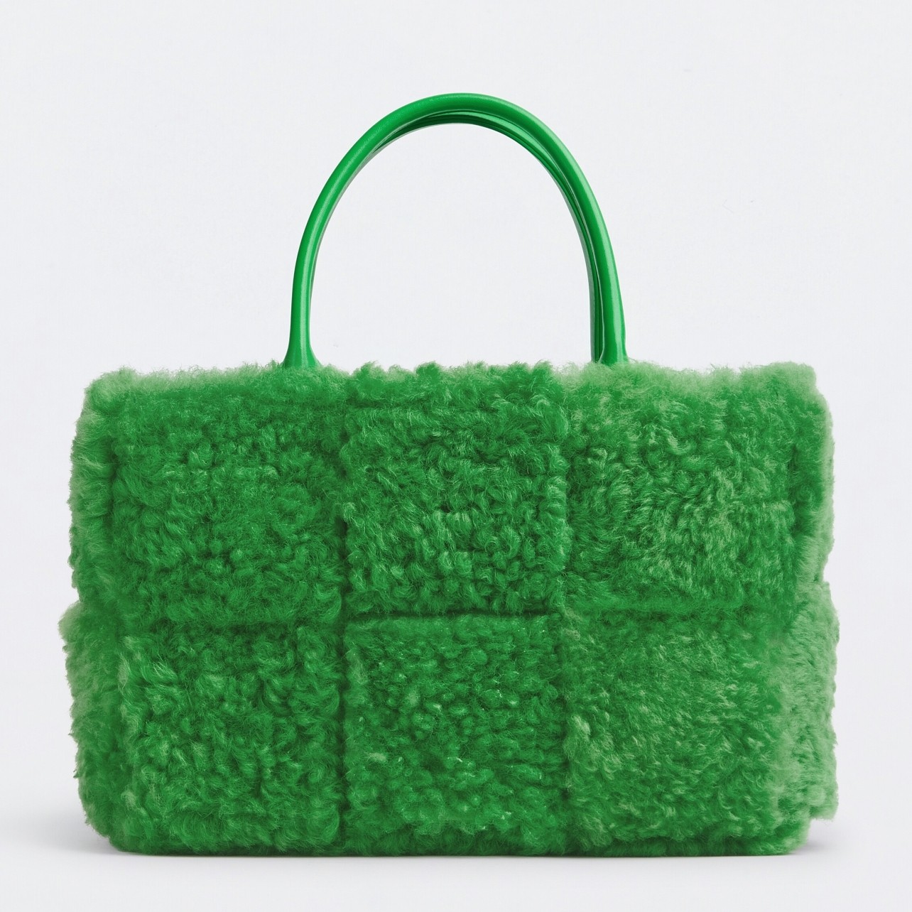 Bottega Veneta Arco Tote In Green Intrecciato Shearling