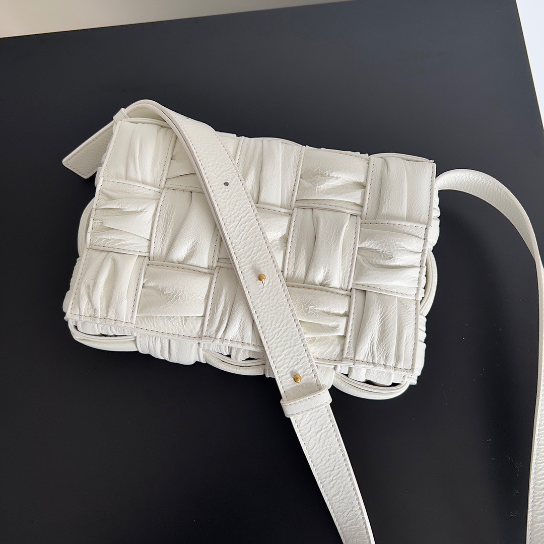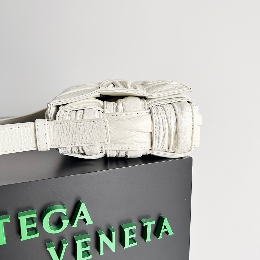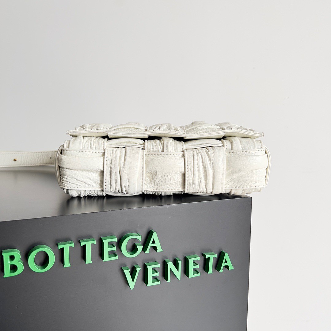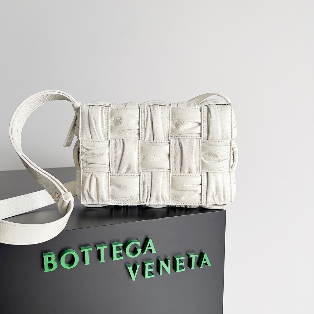 Bottega Veneta Cassette Bag In White Foulard Intreccio Leather