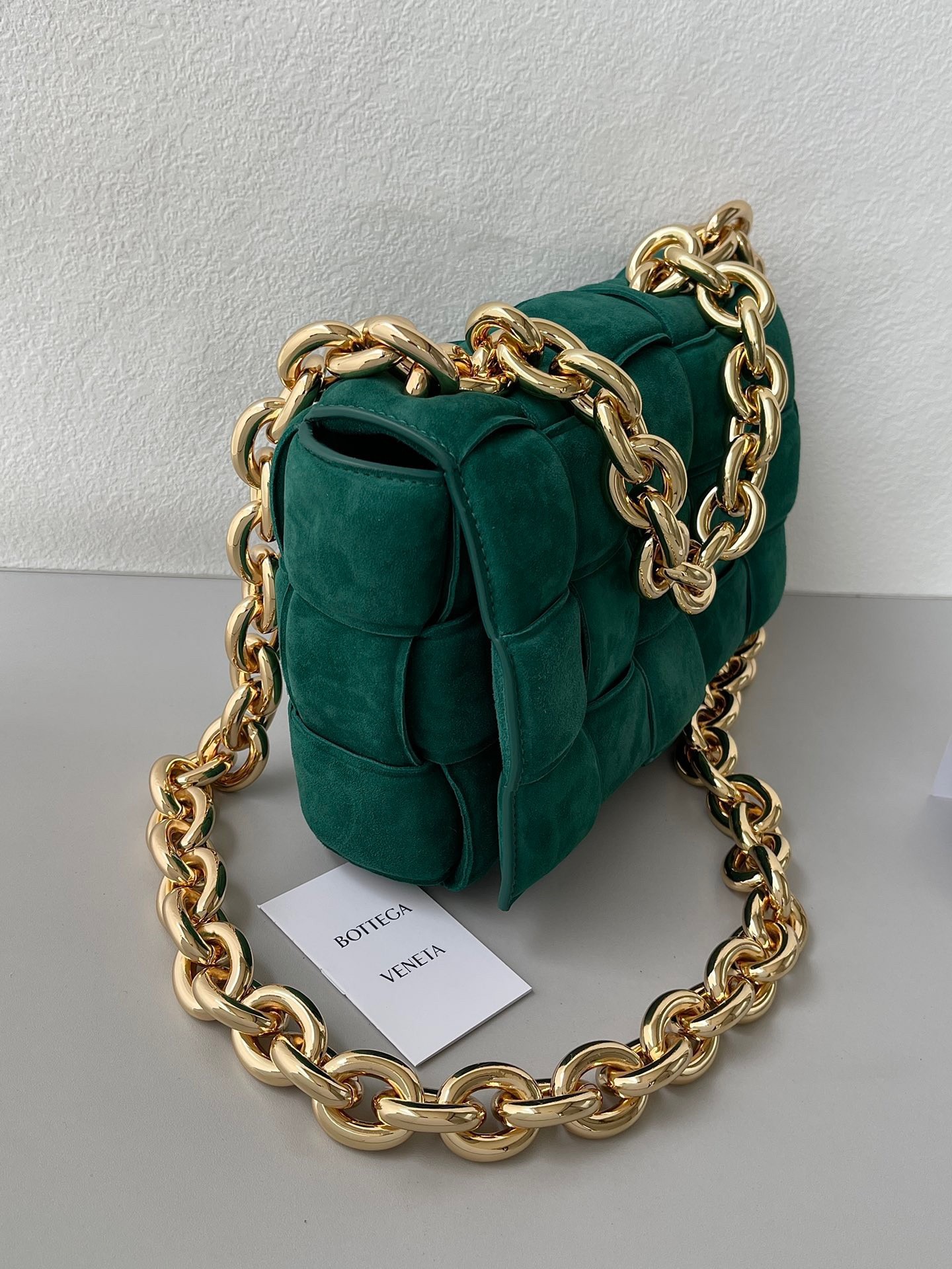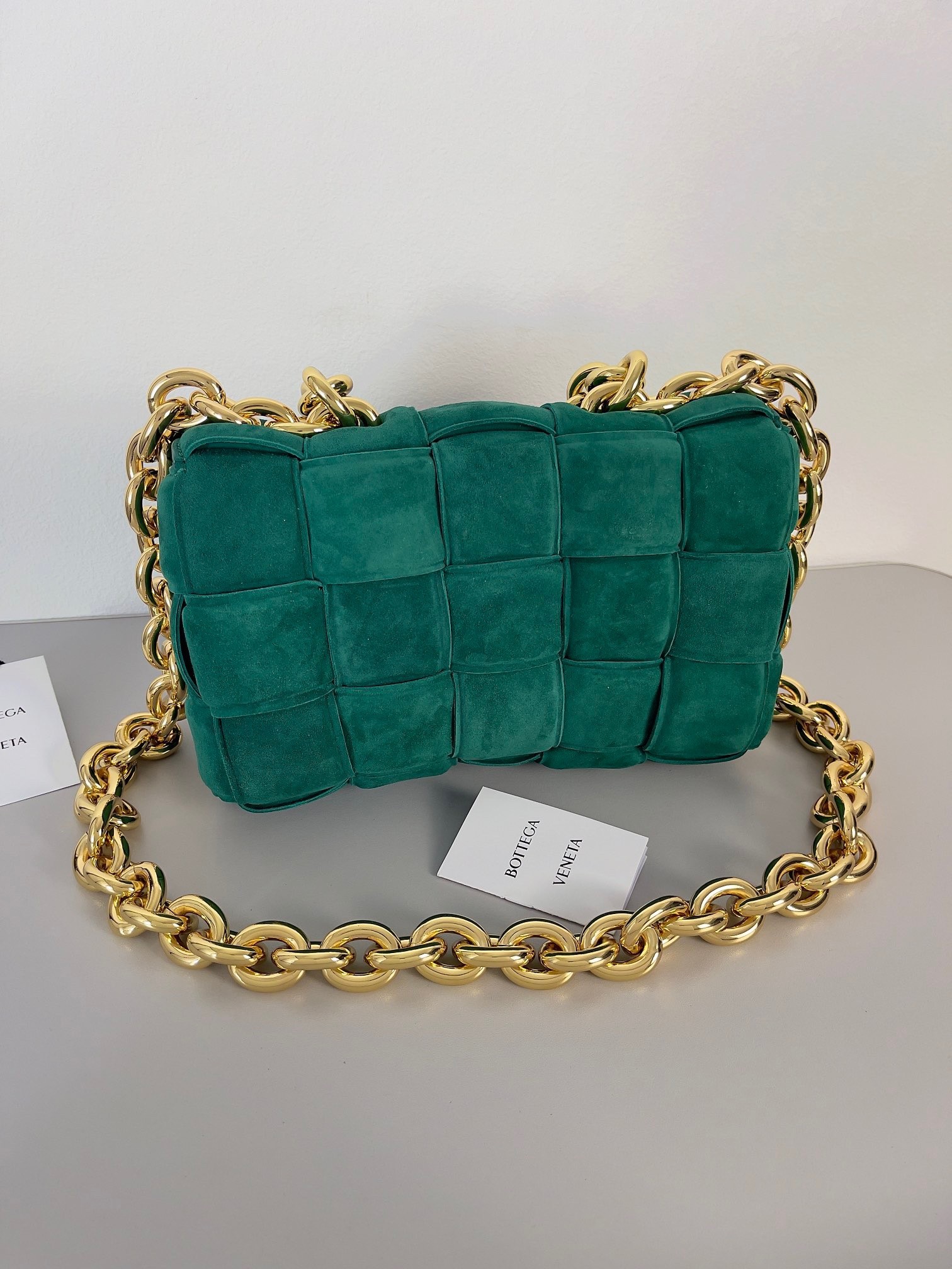 Bottega Veneta Chain Cassette Bag In Emerald Green Suede