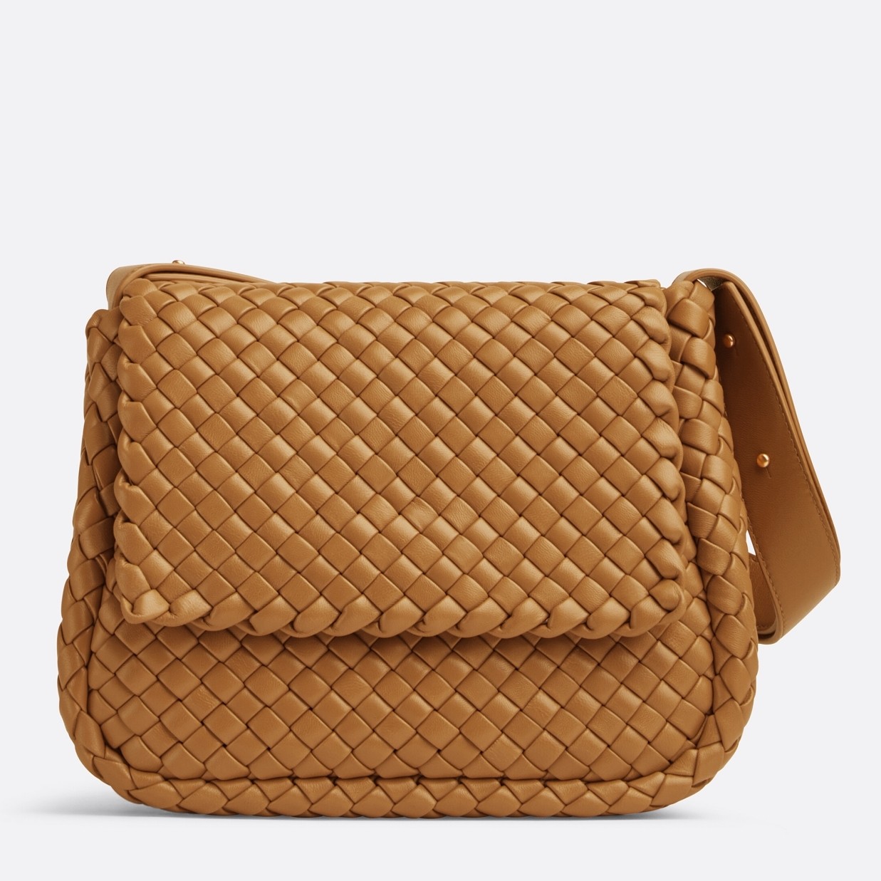 Bottega Veneta Cobble Small Bag in Caramel Intrecciato Leather