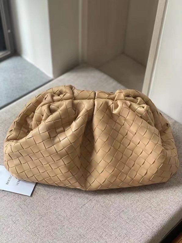 Bottega Veneta Large Pouch Clutch In Beige Intrecciato Lambskin