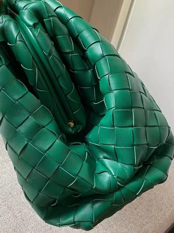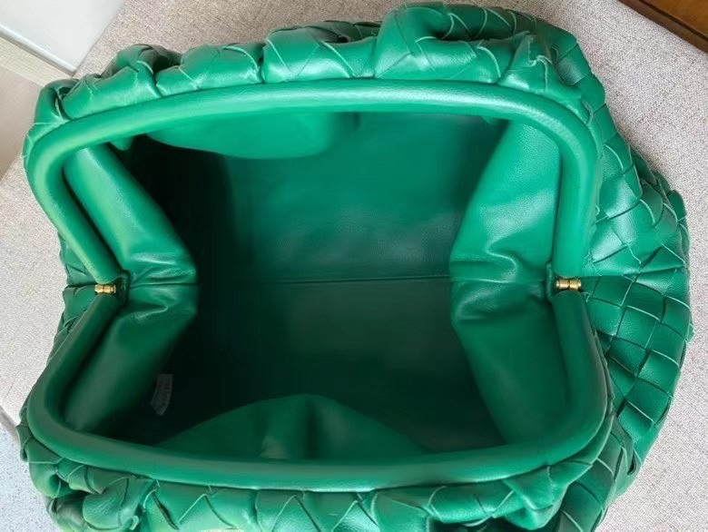 Bottega Veneta Large Pouch Clutch In Green Intrecciato Lambskin