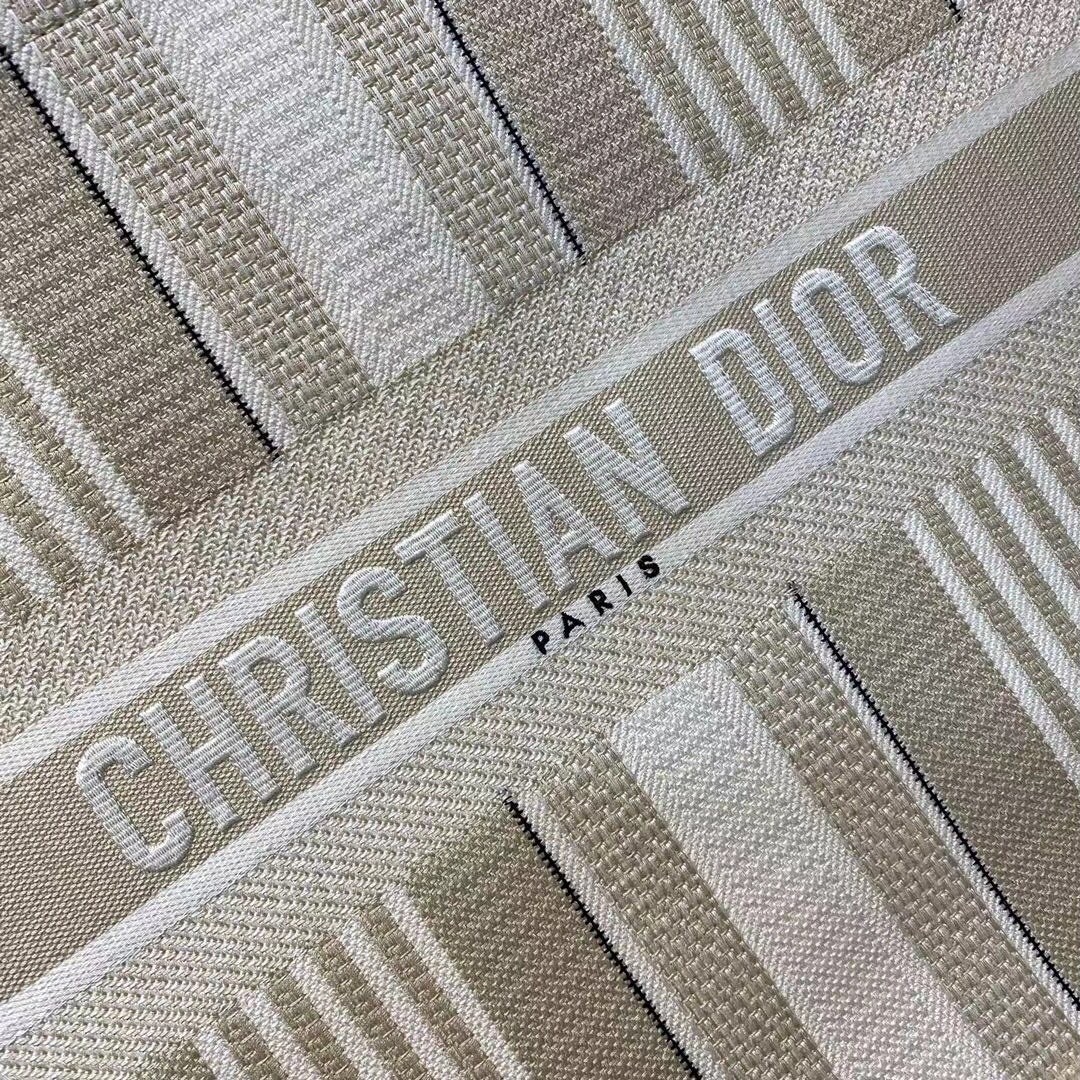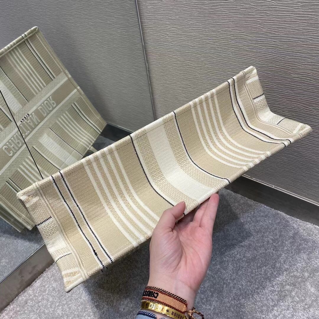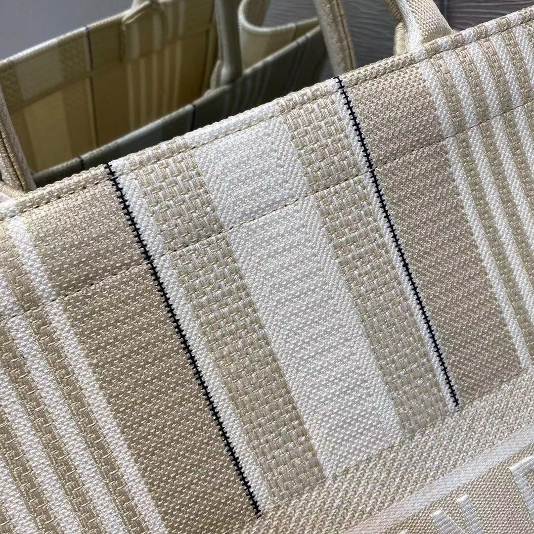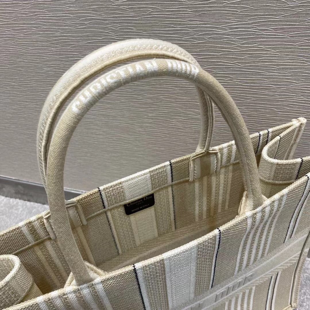 Dior Book Tote Bag In Beige Stripes Embroidery