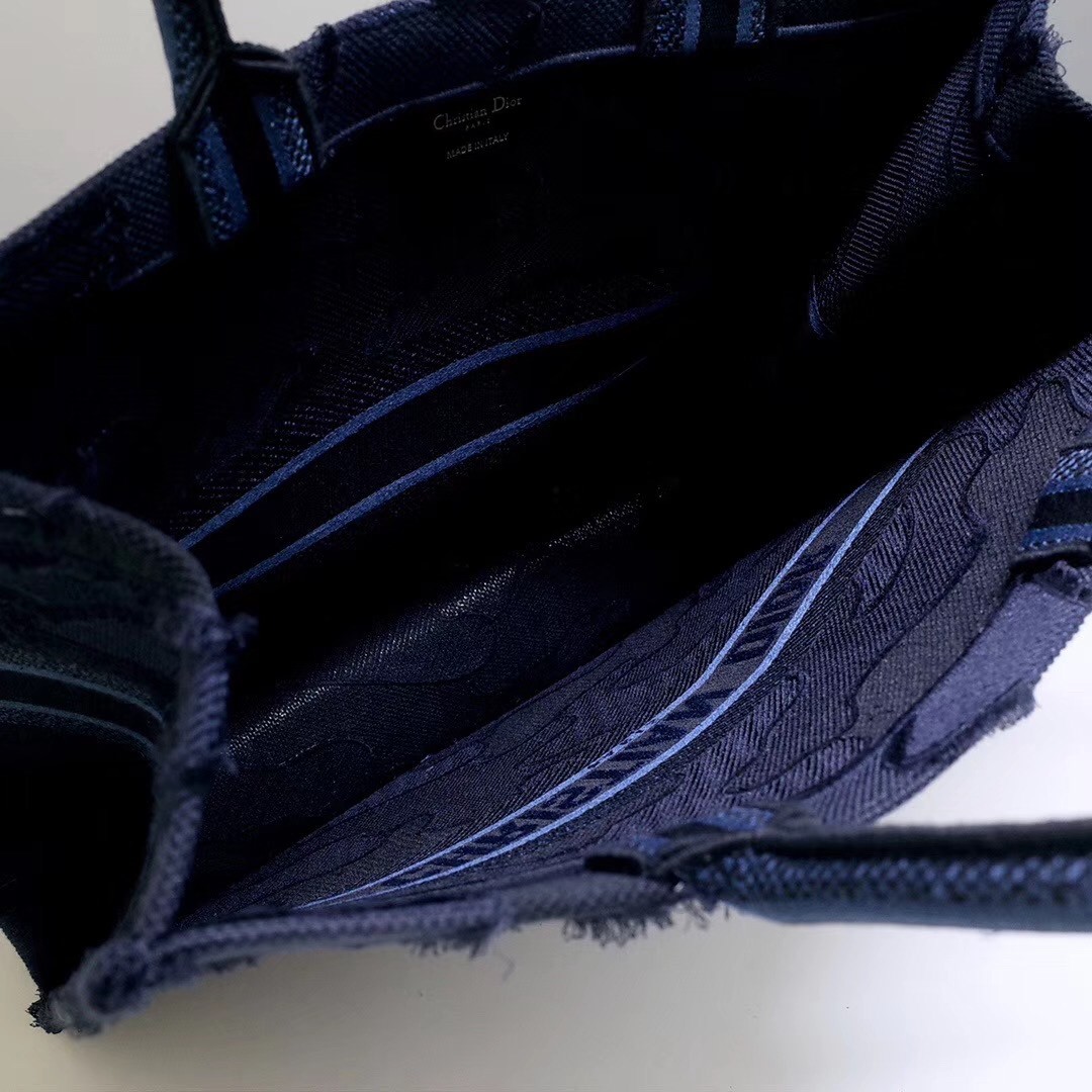 Dior Book Tote Bag In Blue Camouflage Embroidered Canvas