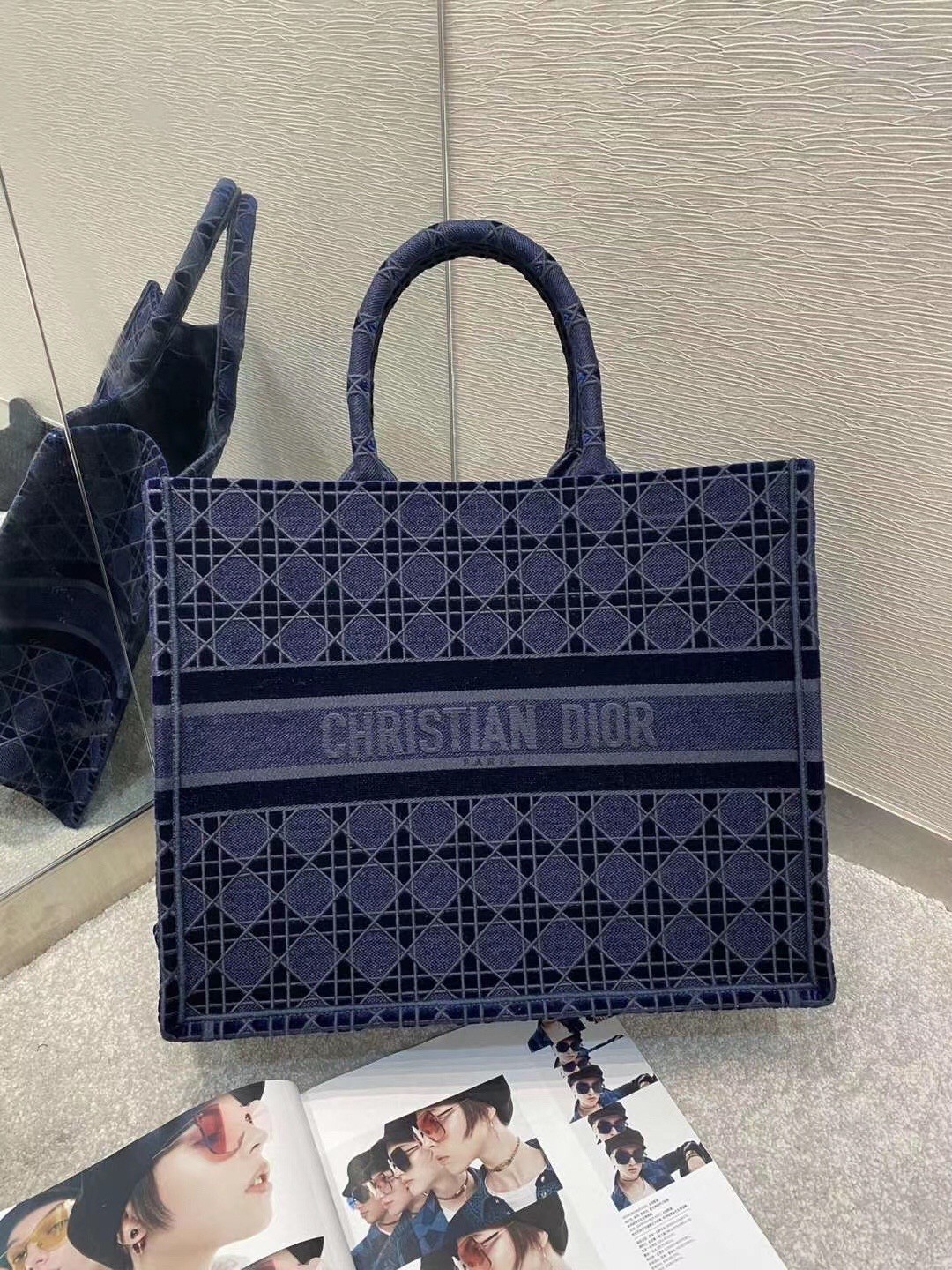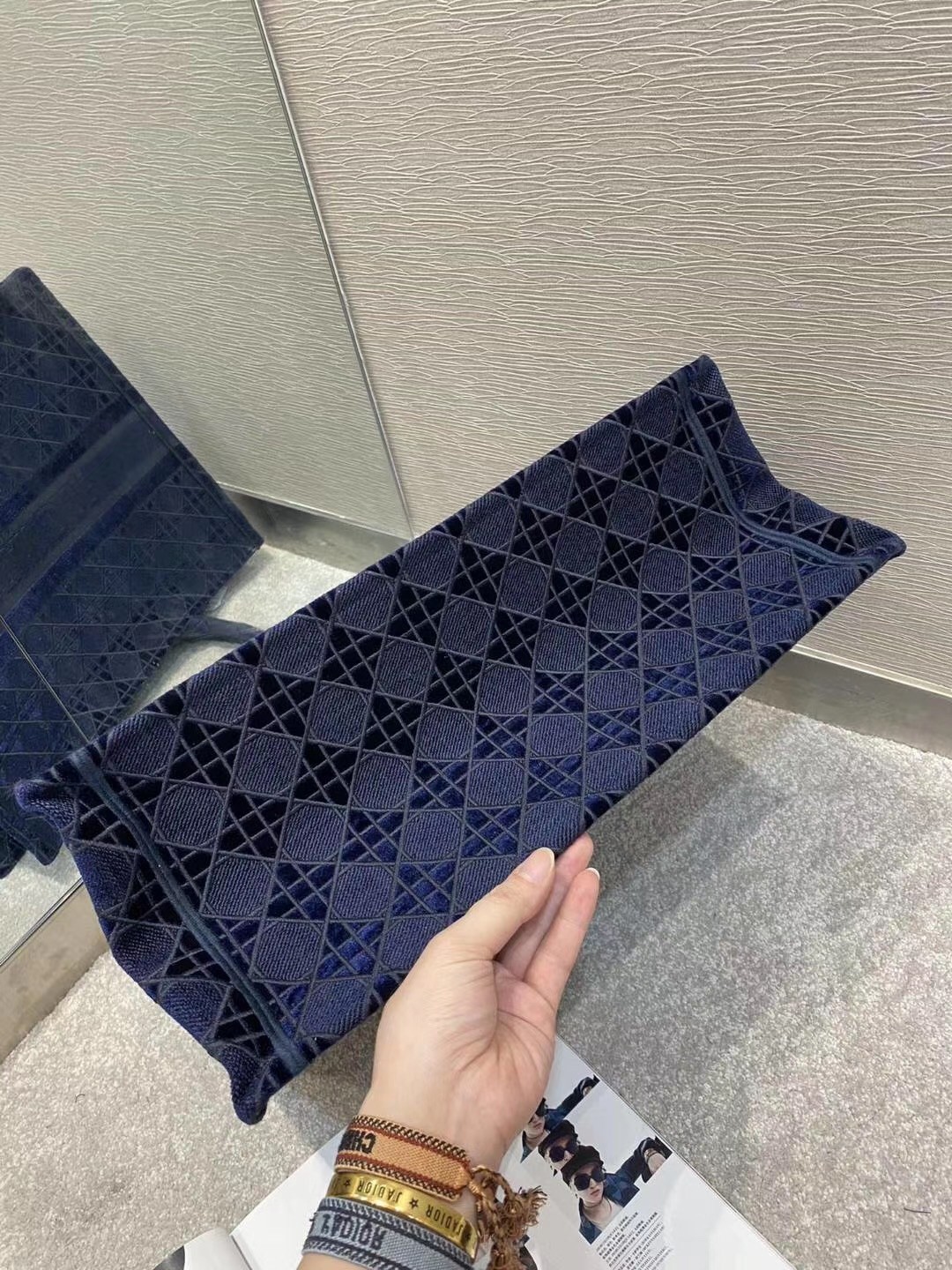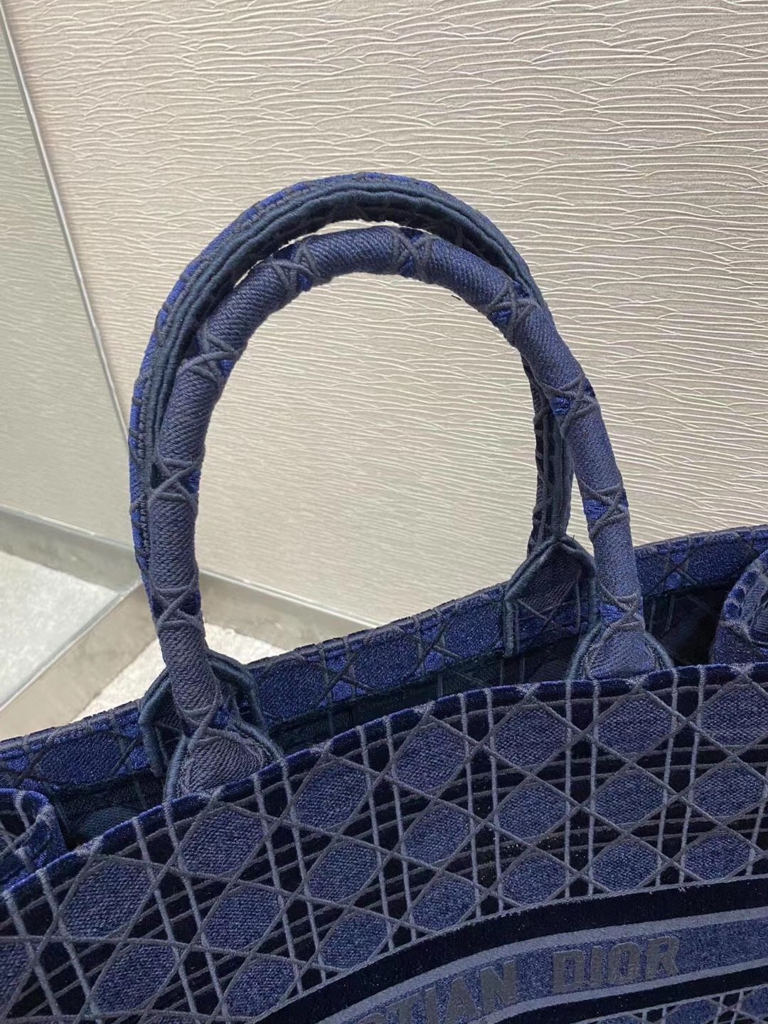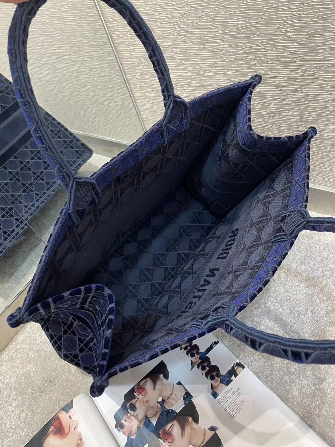 Dior Book Tote Bag In Blue Cannage Embroidered Velvet