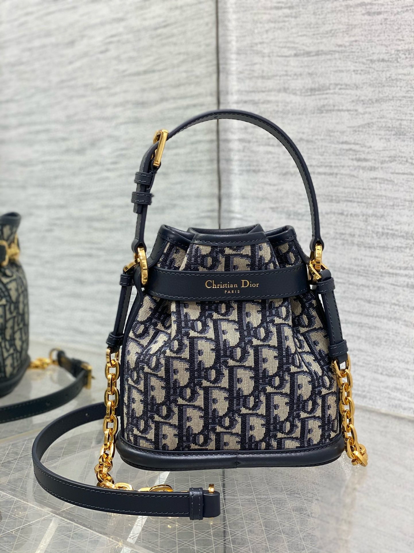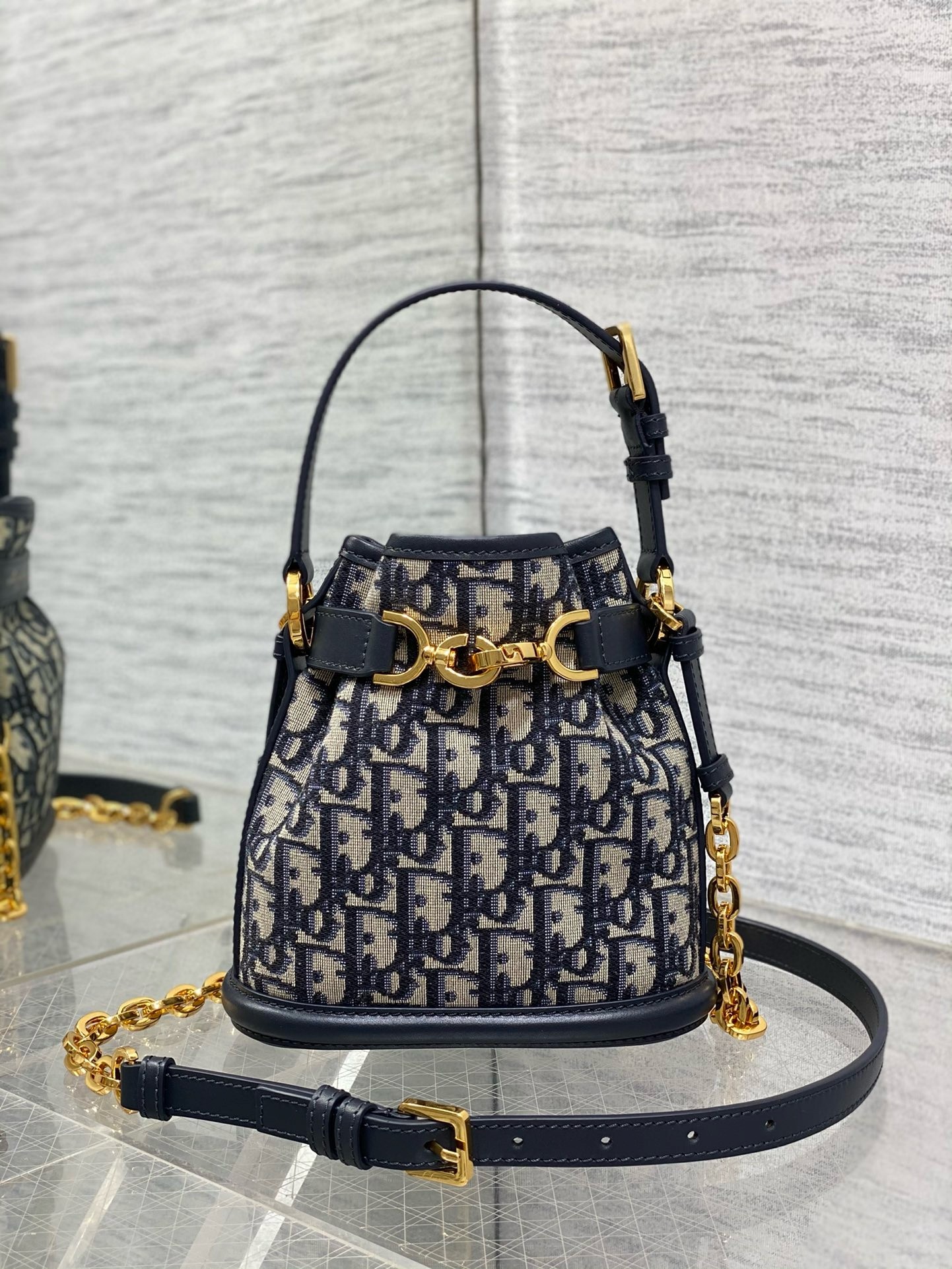 New for Fall 2023, the C'est Dior bag is an elegant and timeless creation. The blue Dior Oblique jacquard style is enhanced by blue calfskin details. Thanks to its CD Lock closure with a twisting letter D, the bucket bag can keep the essentials secure. A top handle and adjustable, removable chain strap with a leather insert allow the small bag to be comfortably carried by hand.