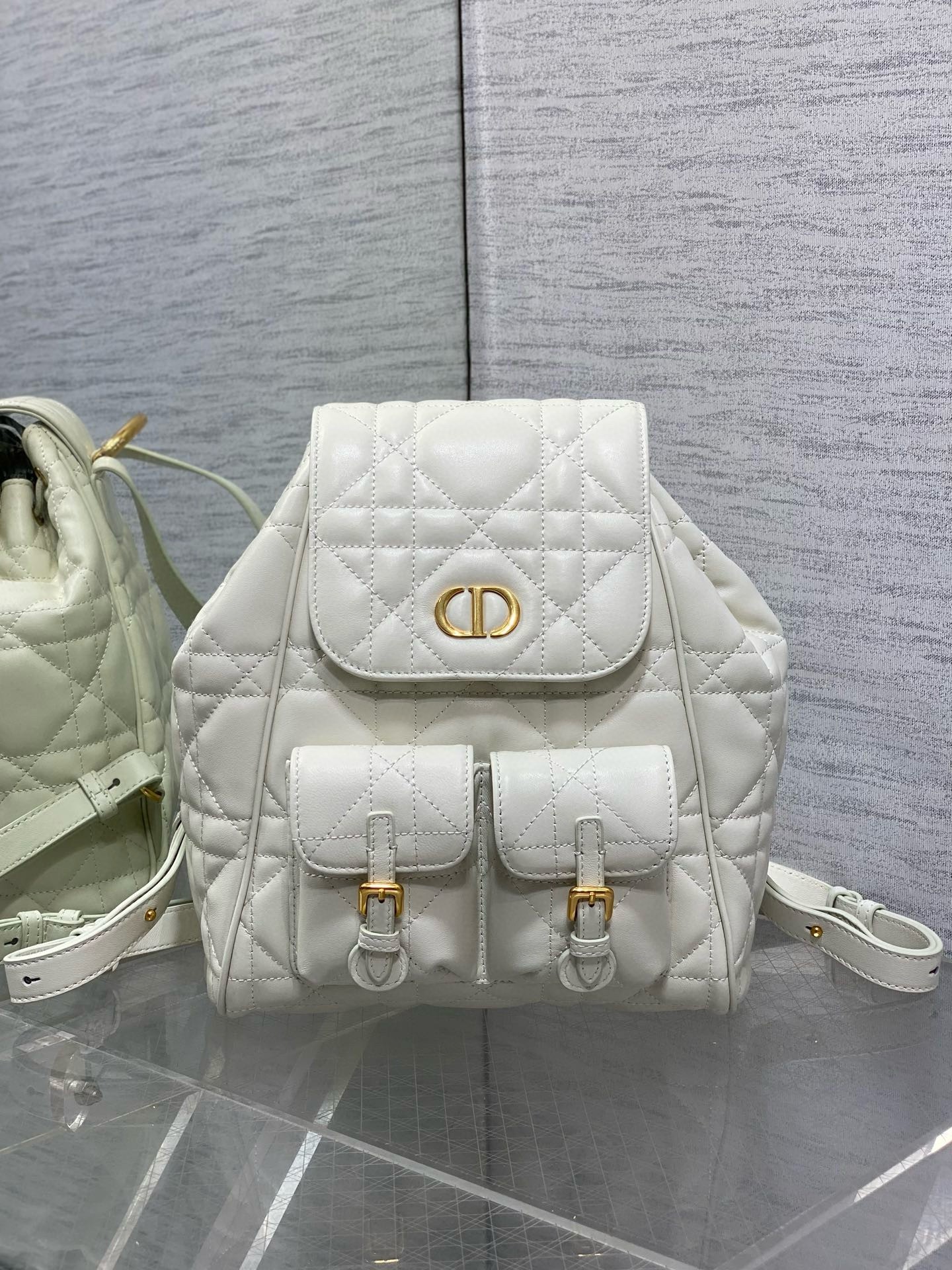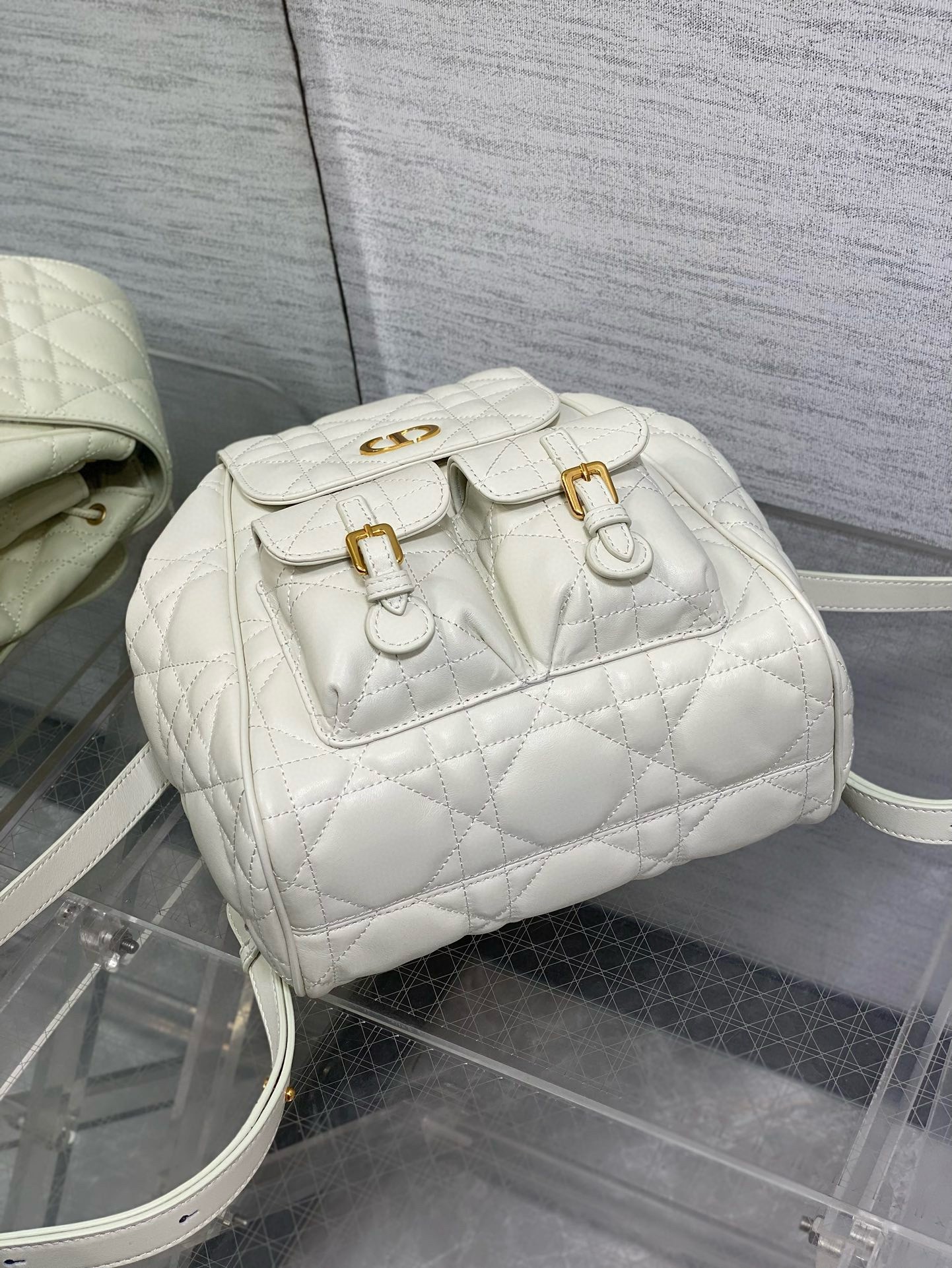 Dior Caro Medium Backpack in White Macrocannage Lambskin