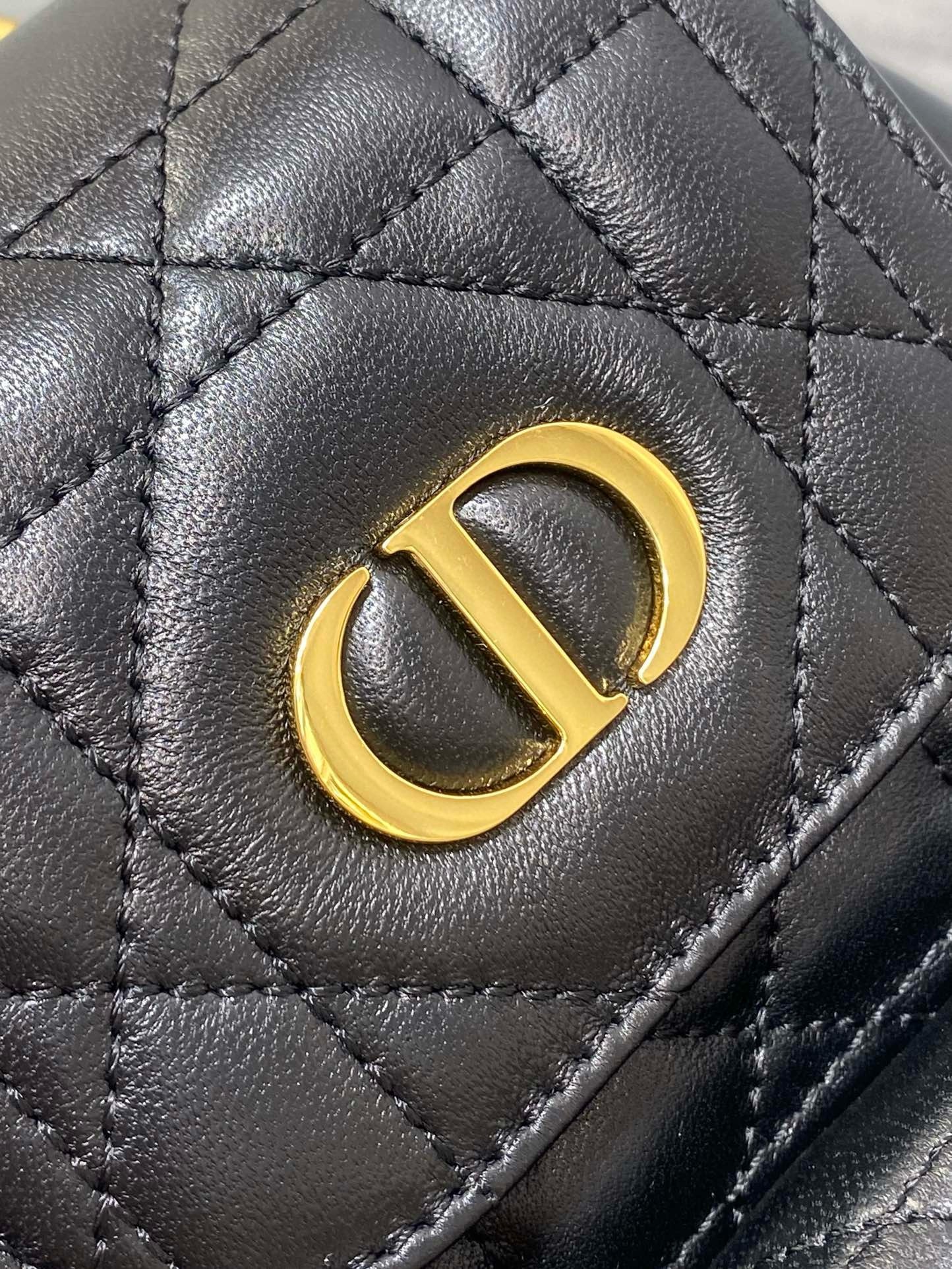 New for Cruise 2025, the Dior Caro backpack embodies modern and elegant style. Crafted in lambskin elevated by Macrocannage topstitching, the design features a flap adorned with an antique gold-finish metal CD signature that opens to reveal a drawstring main compartment, while a small flap pocket can hold all the essentials. The small backpack has a gold-finish handle and adjustable straps for added comfort.