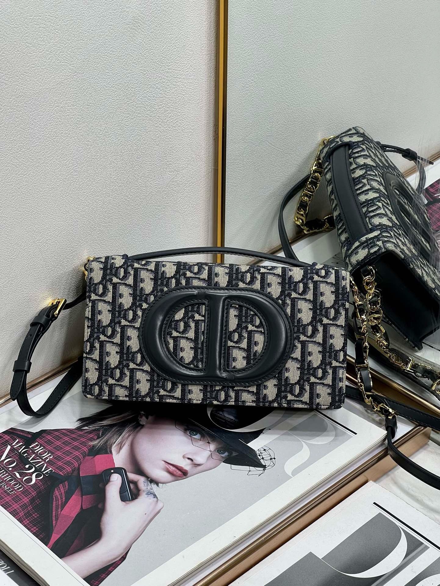 New for Winter 2023, Maria Grazia Chiuri's CD Signature mini bag combines functional design with the House's modern spirit. Crafted in blue Dior Oblique jacquard, it is distinguished by an embossed CD signature on the front that showcases the House savoir-faire. The practical accessory will accommodate your essentials and is the ideal day and evening companion. A top handle completed by an adjustable and removable chain interlaced with leather allows the bag to be carried by hand or worn crossbody.