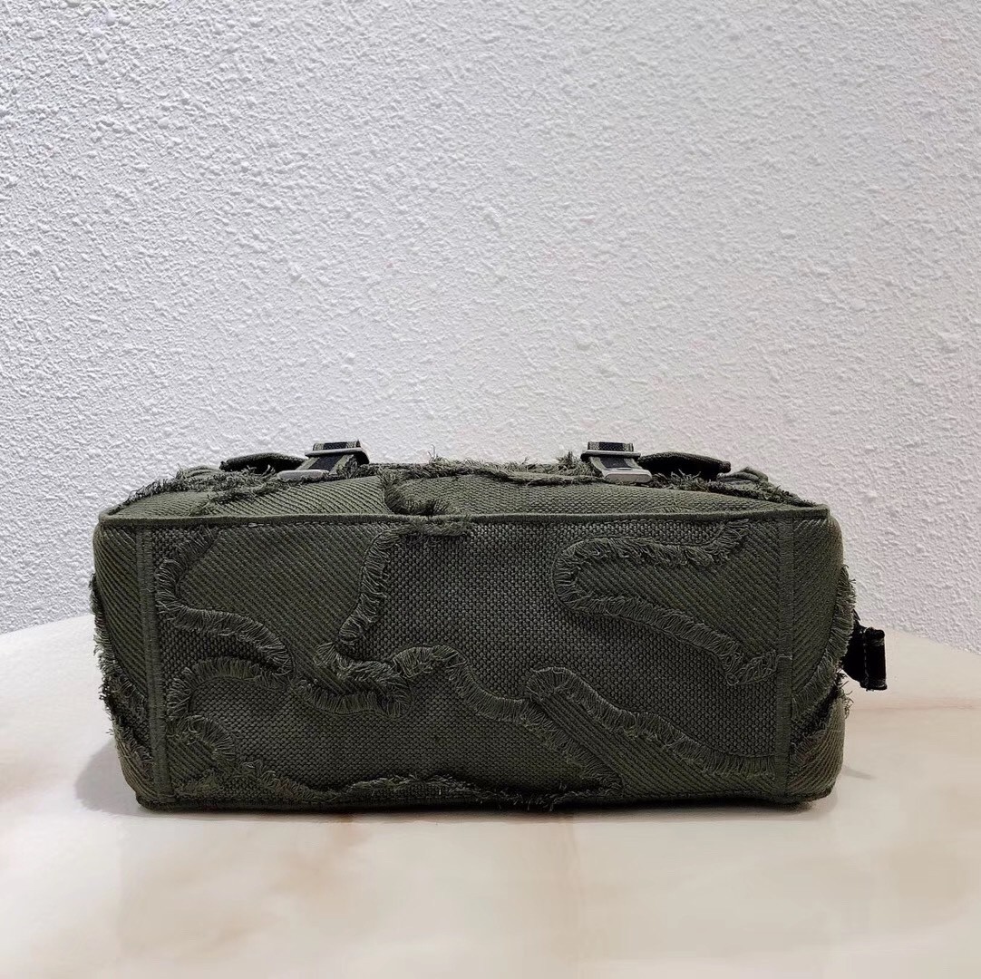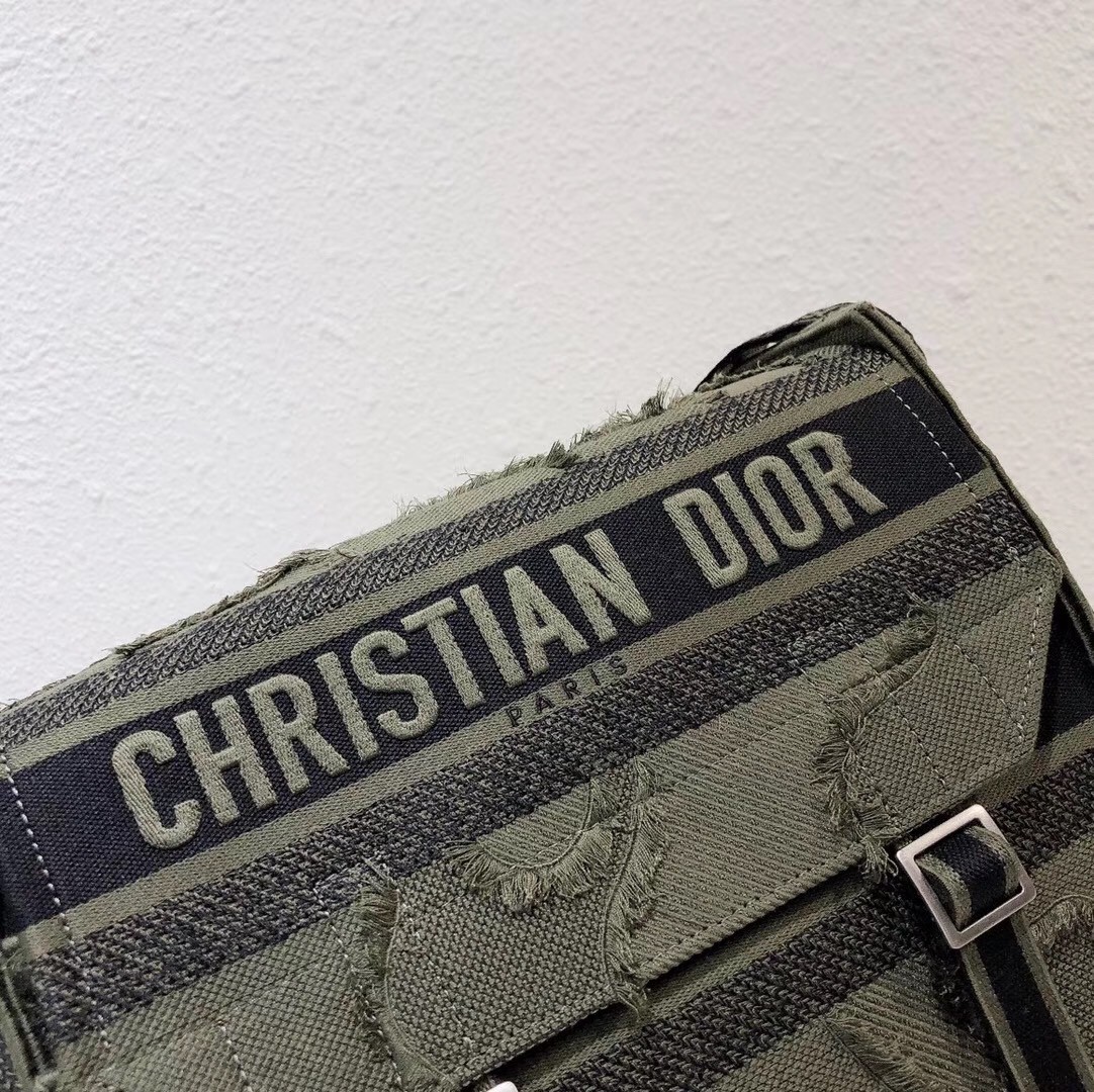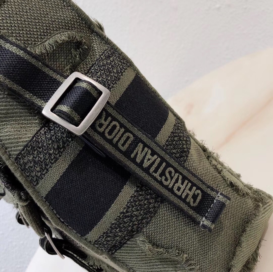 Maria Grazia Chiuri updates the classic messenger bag with signature Dior elements for a relaxed yet fashion-forward look. Crafted with a green hand-cut, fringed canvas for a camouflage effect, it showcases an urban inspiration, enhanced by a tonal iconic "Christian Dior" signature.