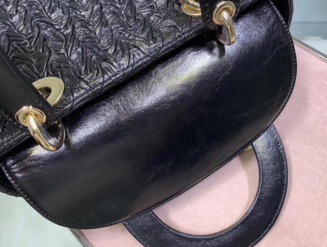 Dior Lady Dior Medium Bag In Black Wavy Crinkled Lambskin