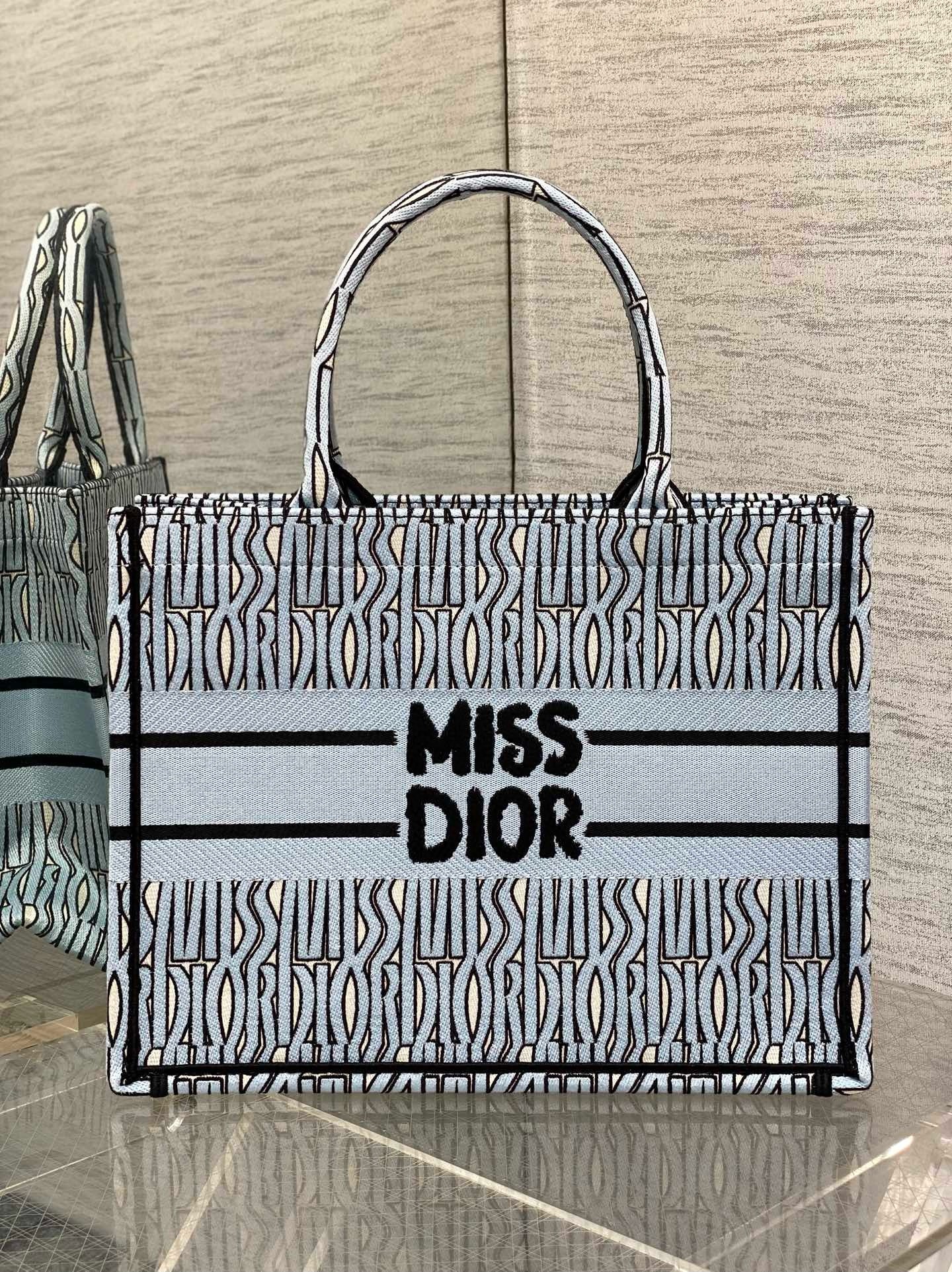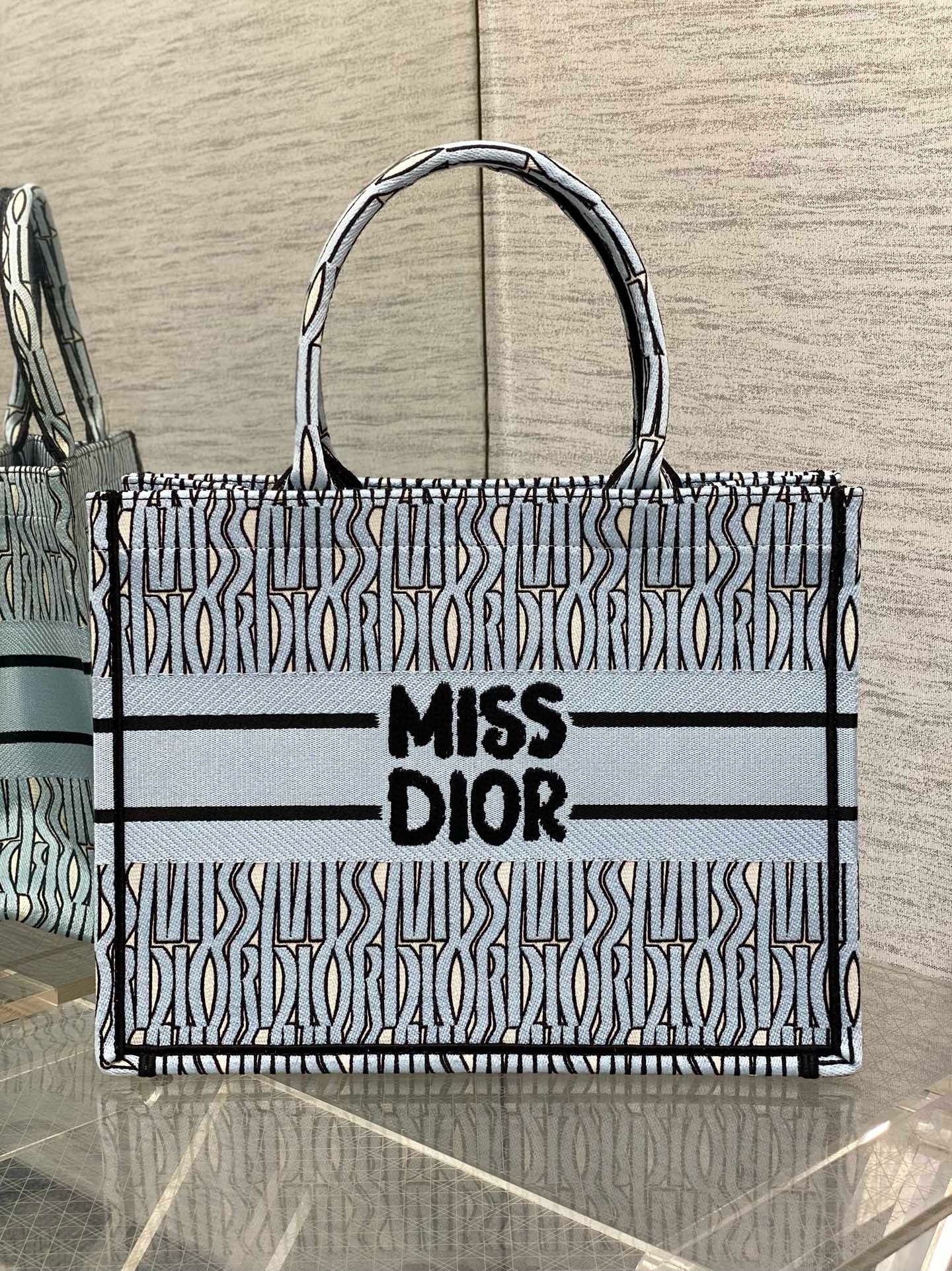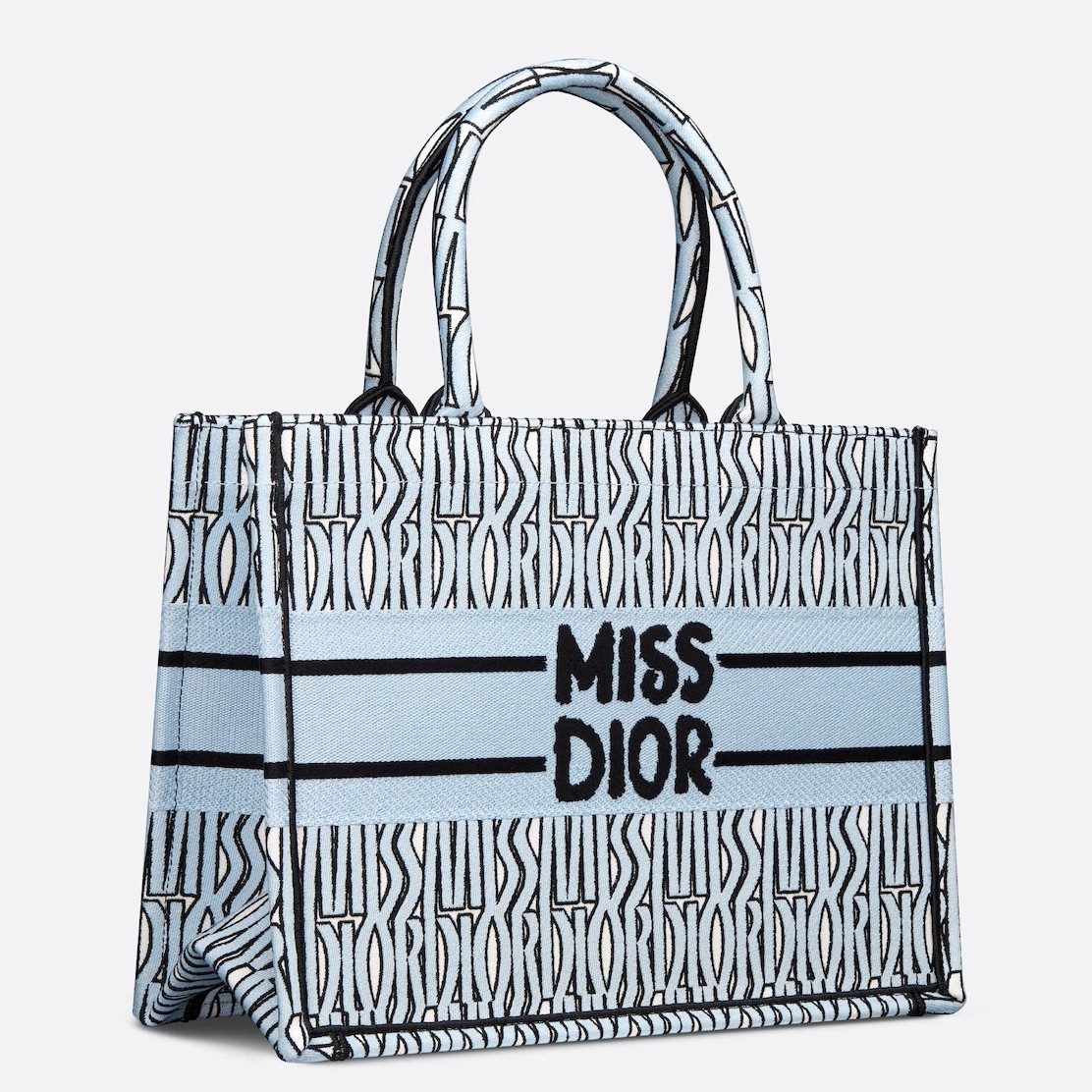 Dior Medium Book Tote Bag in Blue Miss Dior Allover Embroidery