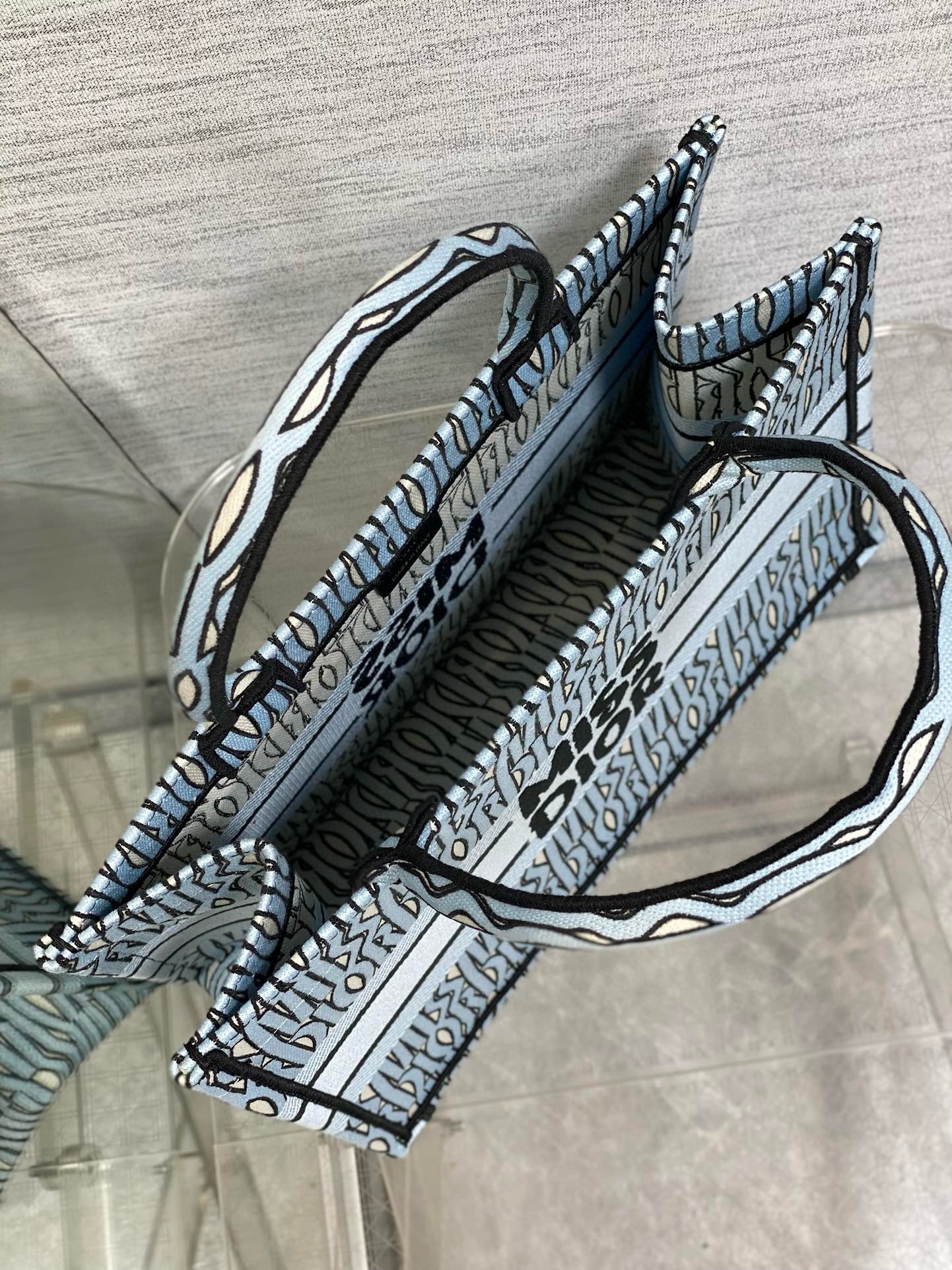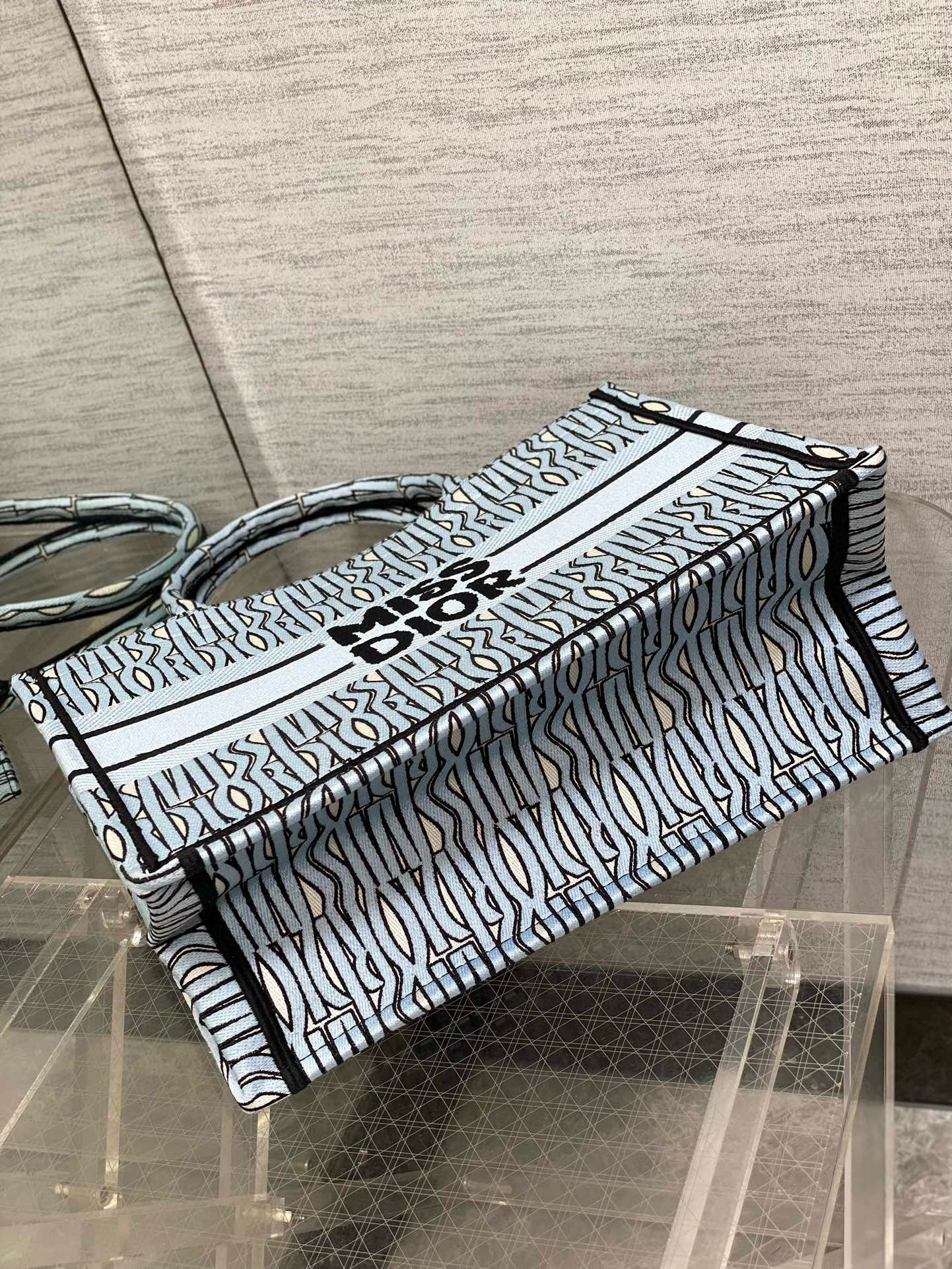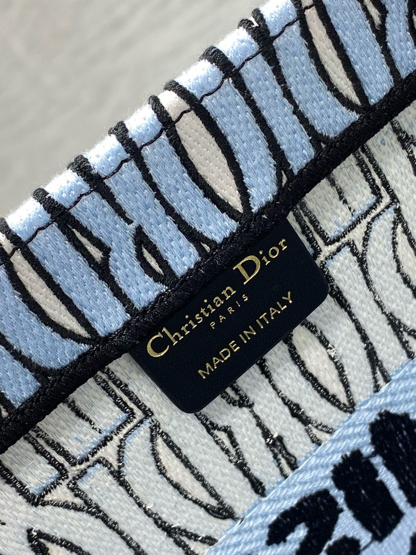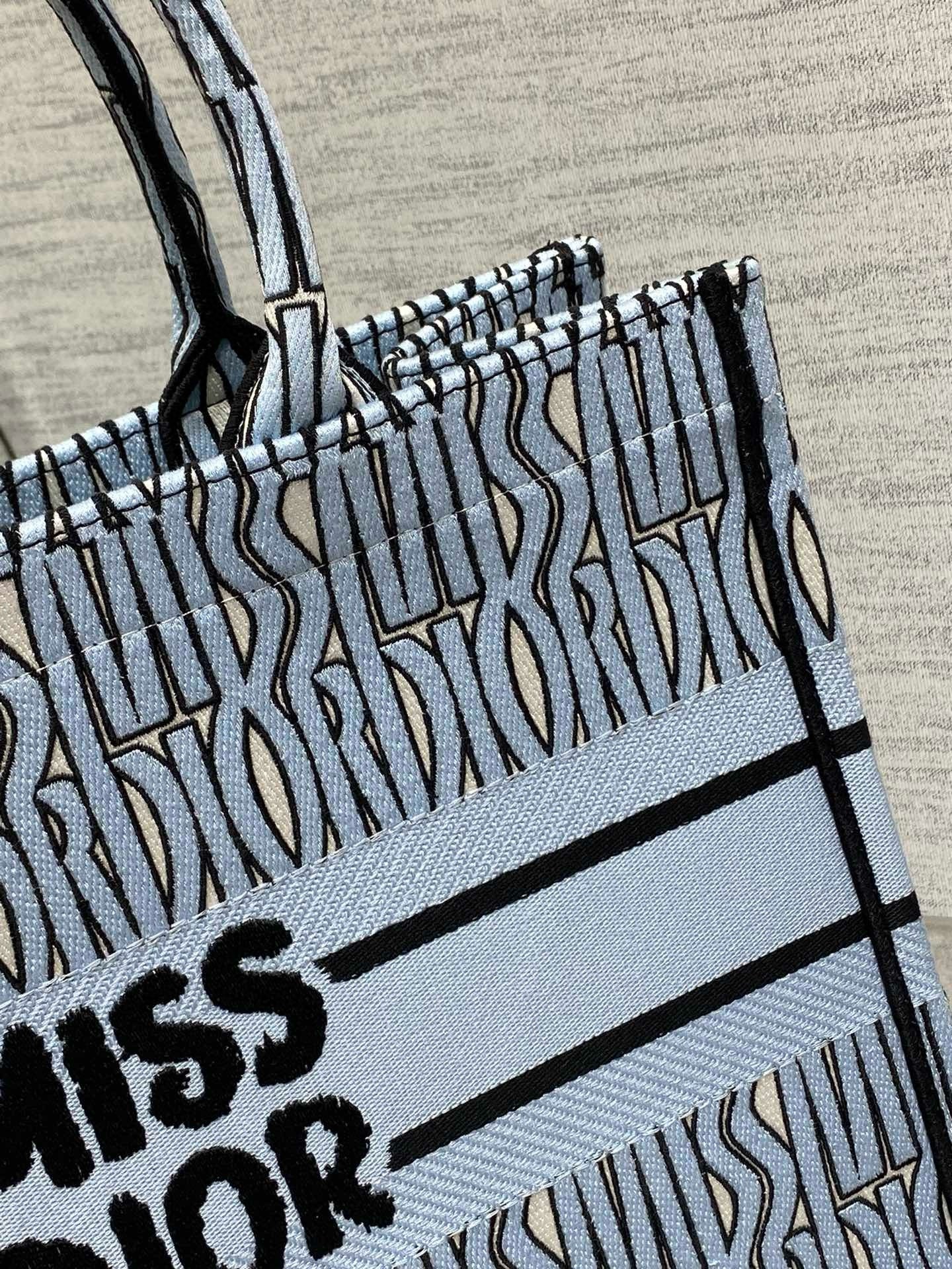 Dior Medium Book Tote Bag in Blue Miss Dior Allover Embroidery