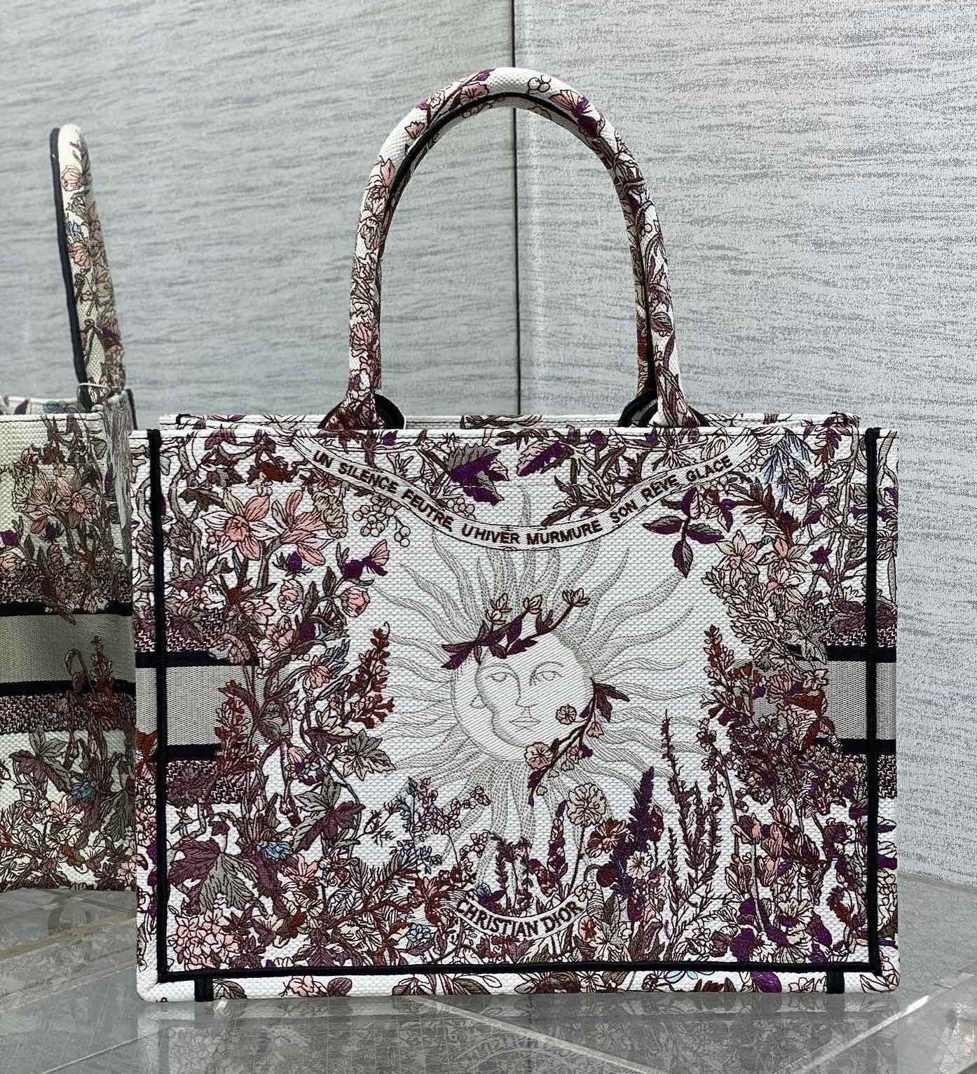 Dior Medium Book Tote Bag in Dior 4 Saisons Hiver Soleil Embroidery