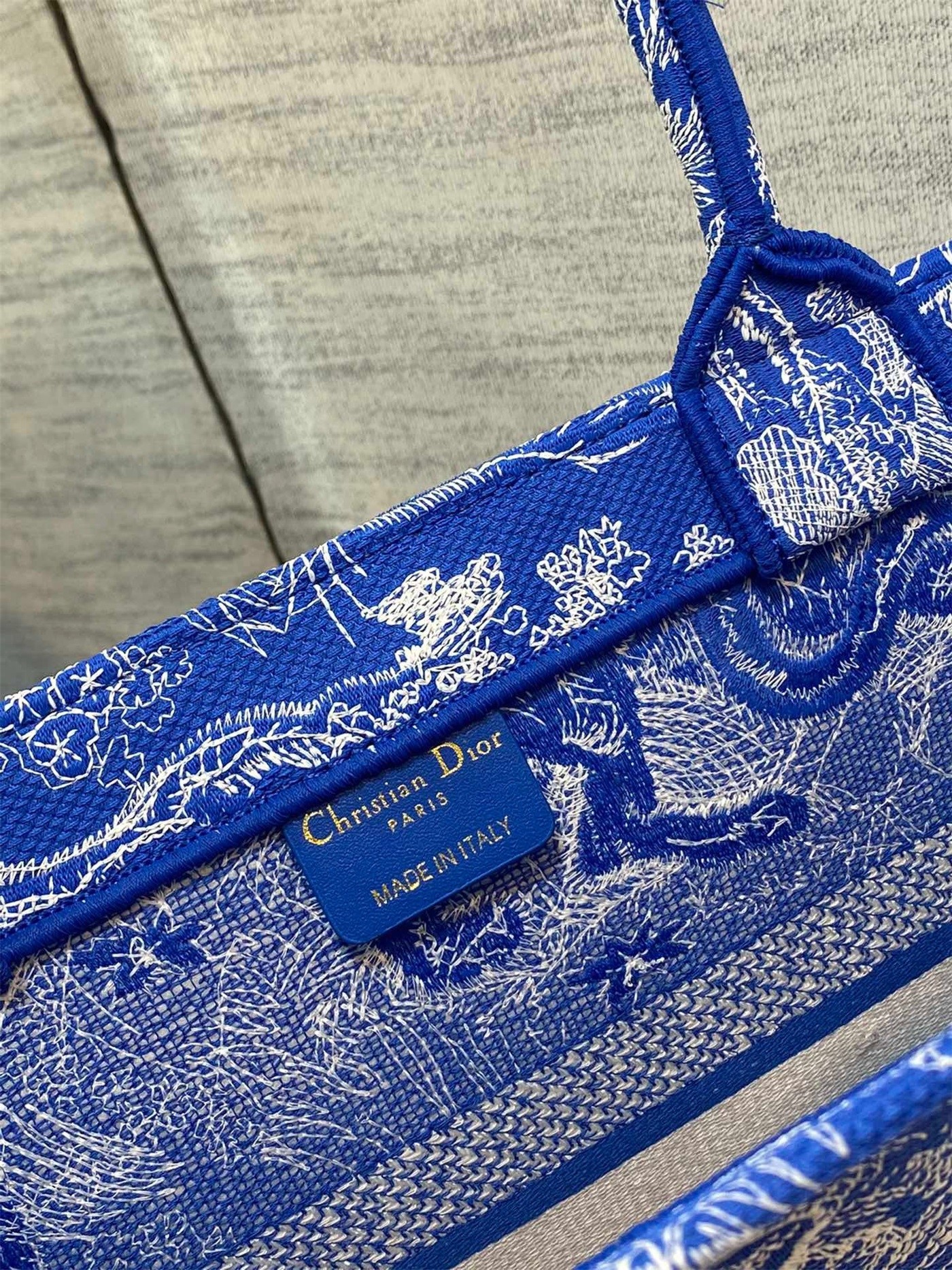 Dior Medium Book Tote Bag In Fluorescent Blue Toile de Jouy Reverse Embroidery
