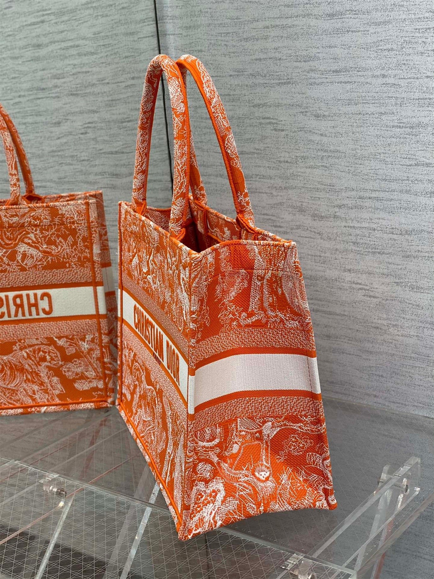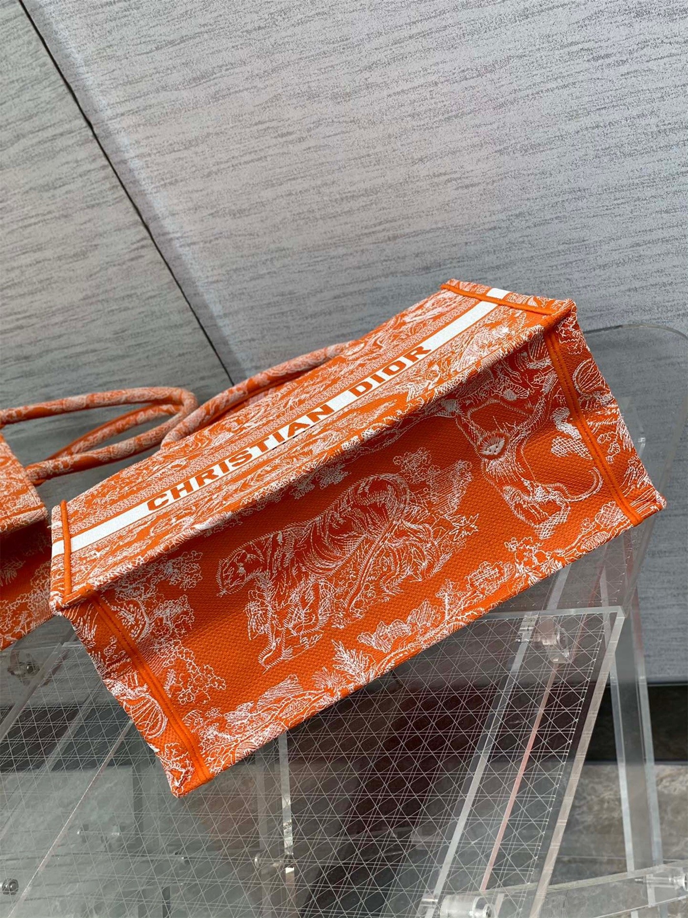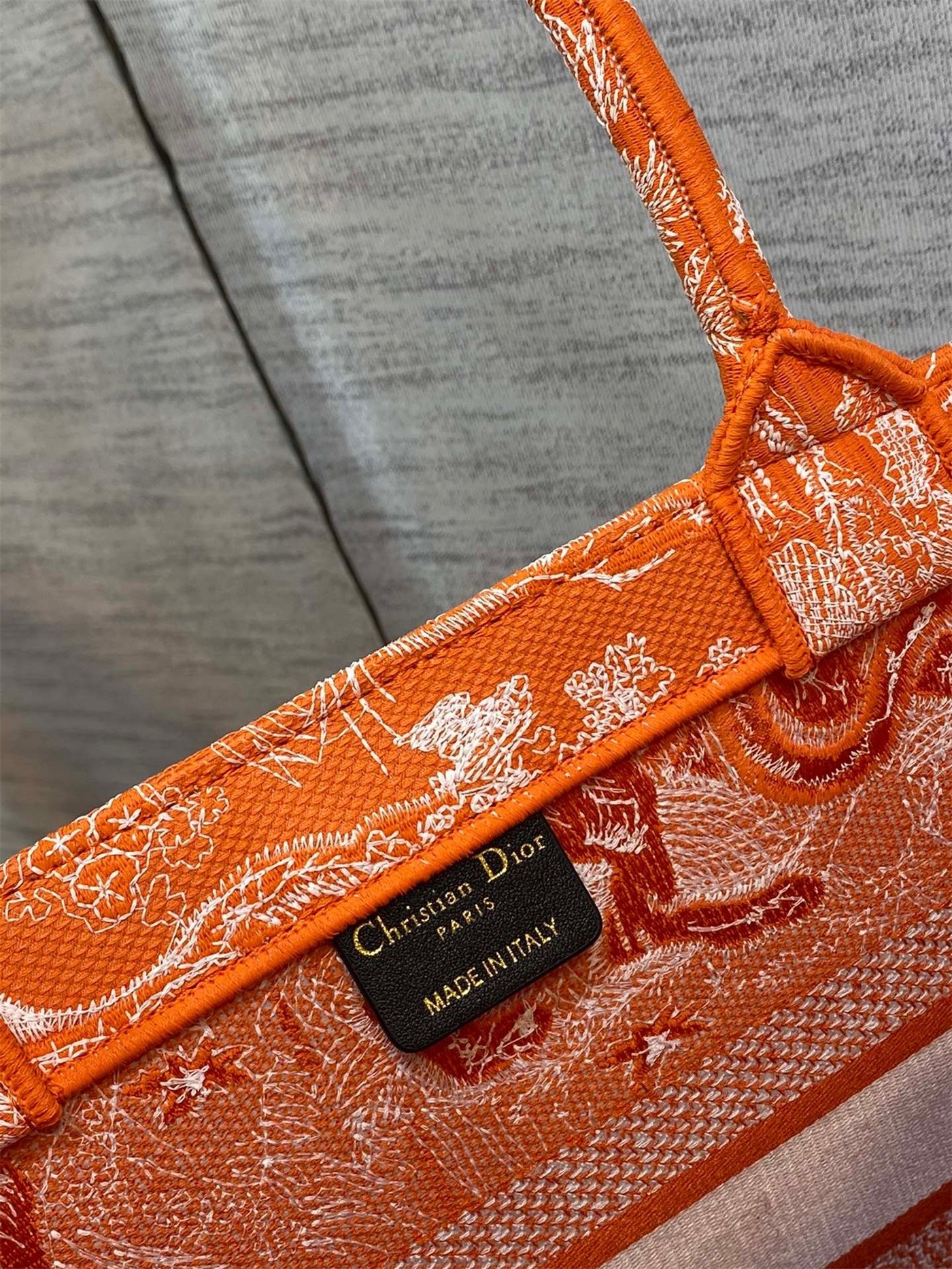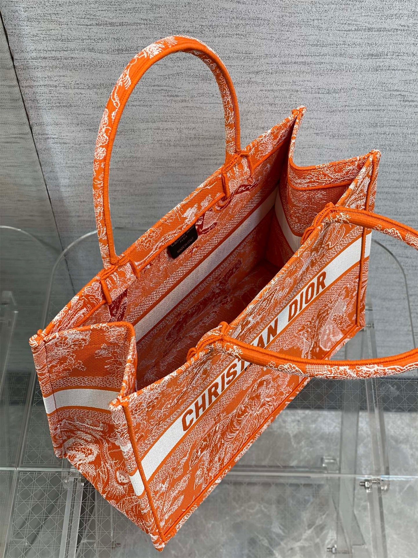 Dior Medium Book Tote Bag In Fluorescent Orange Toile de Jouy Reverse Embroidery