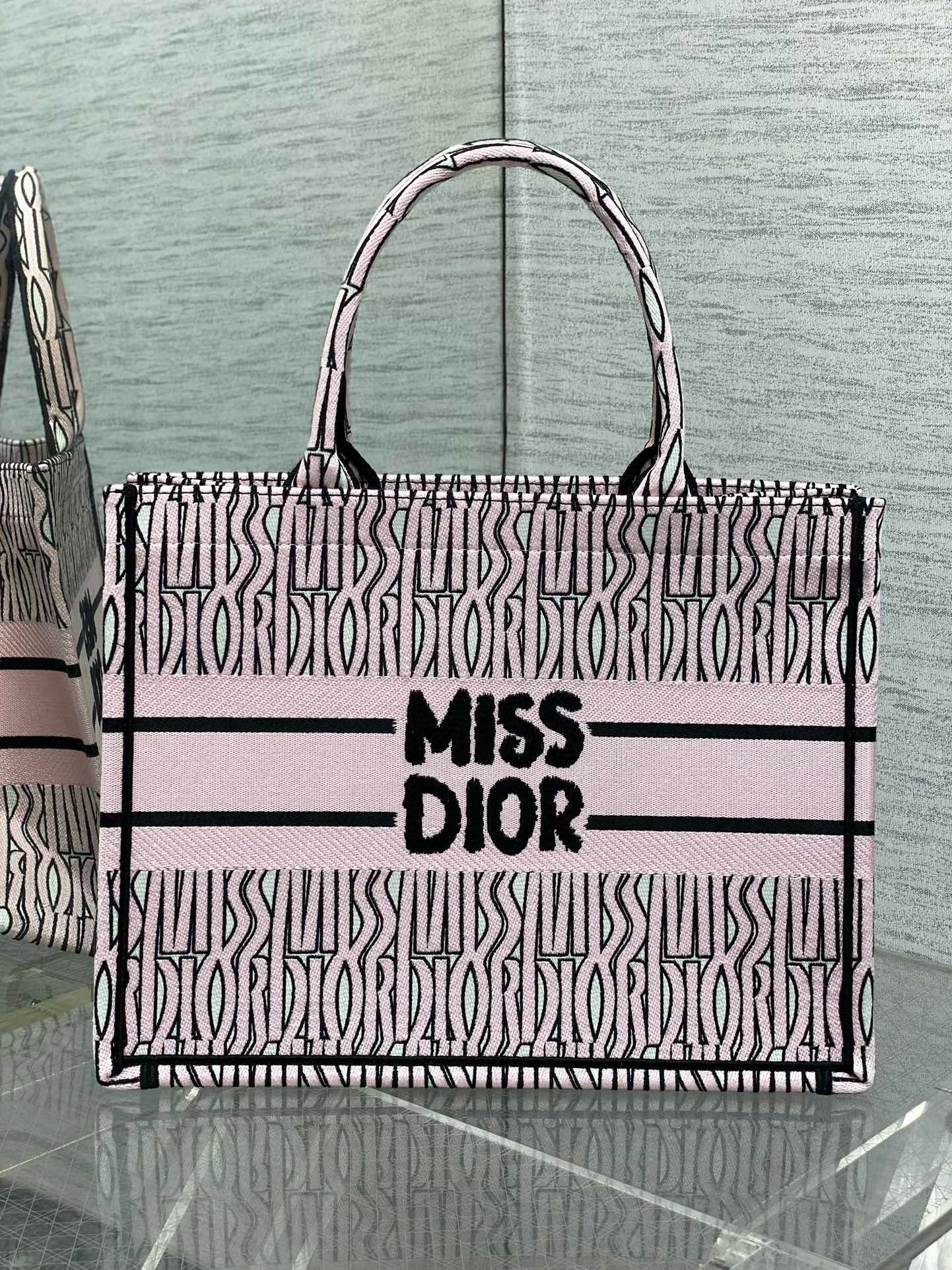 Dior Medium Book Tote Bag in Pink Miss Dior Allover Embroidery