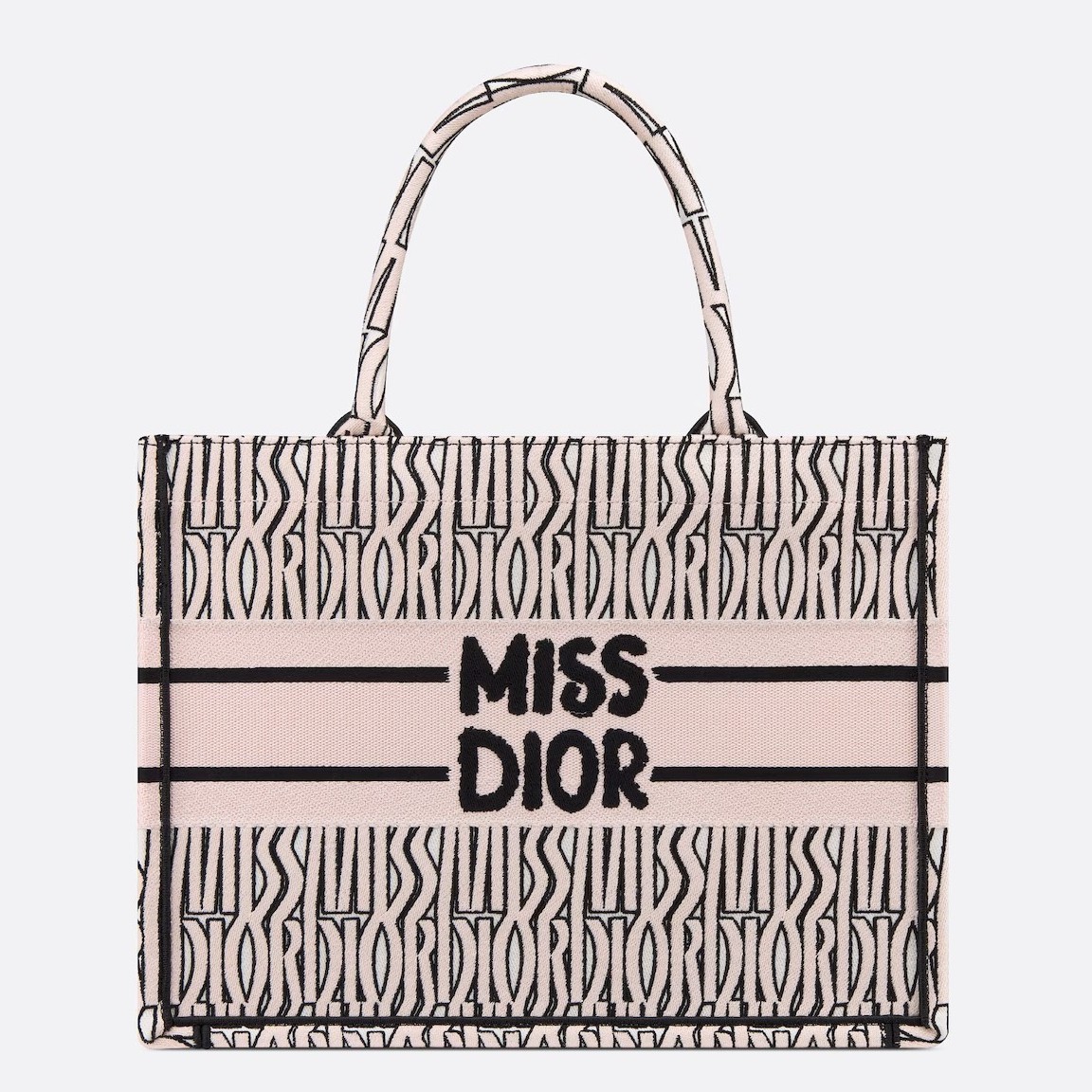 Introduced by Maria Grazia Chiuri, Creative Director of Christian Dior, the Dior Book Tote has become a staple of the Dior aesthetic. Designed to hold all the daily essentials, the pale pink style is fully embroidered with the collection's hallmark white Miss Dior Allover motif, inspired by the Marc Bohan for Dior archives in a modern take on the 1960s. Adorned with the Miss Dior Graffiti signature on the front, the medium tote exemplifies the House's savoir-faire and may be carried by hand or worn over the shoulder.