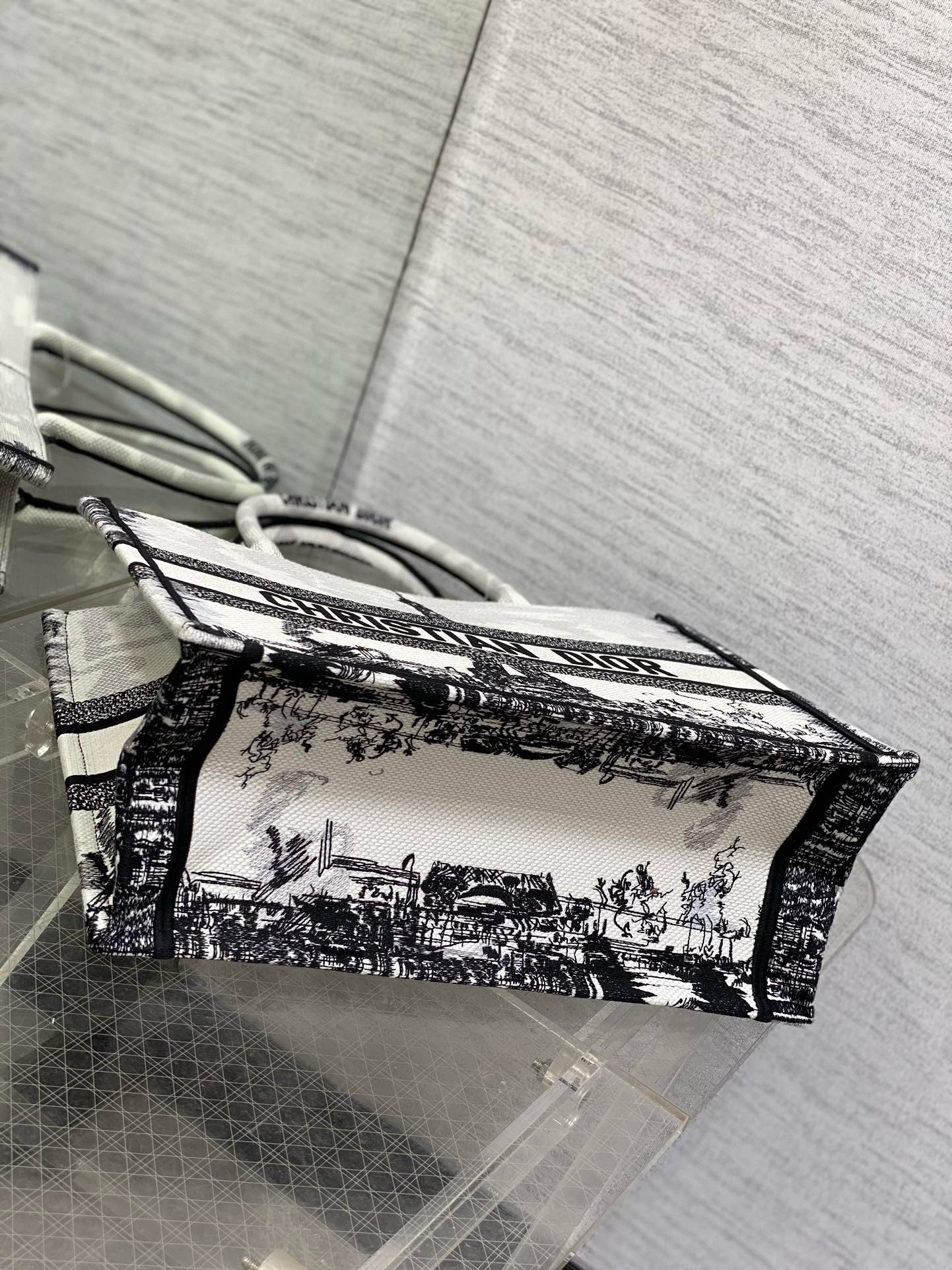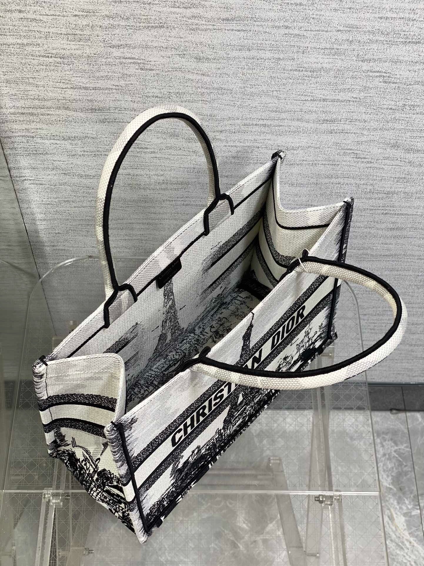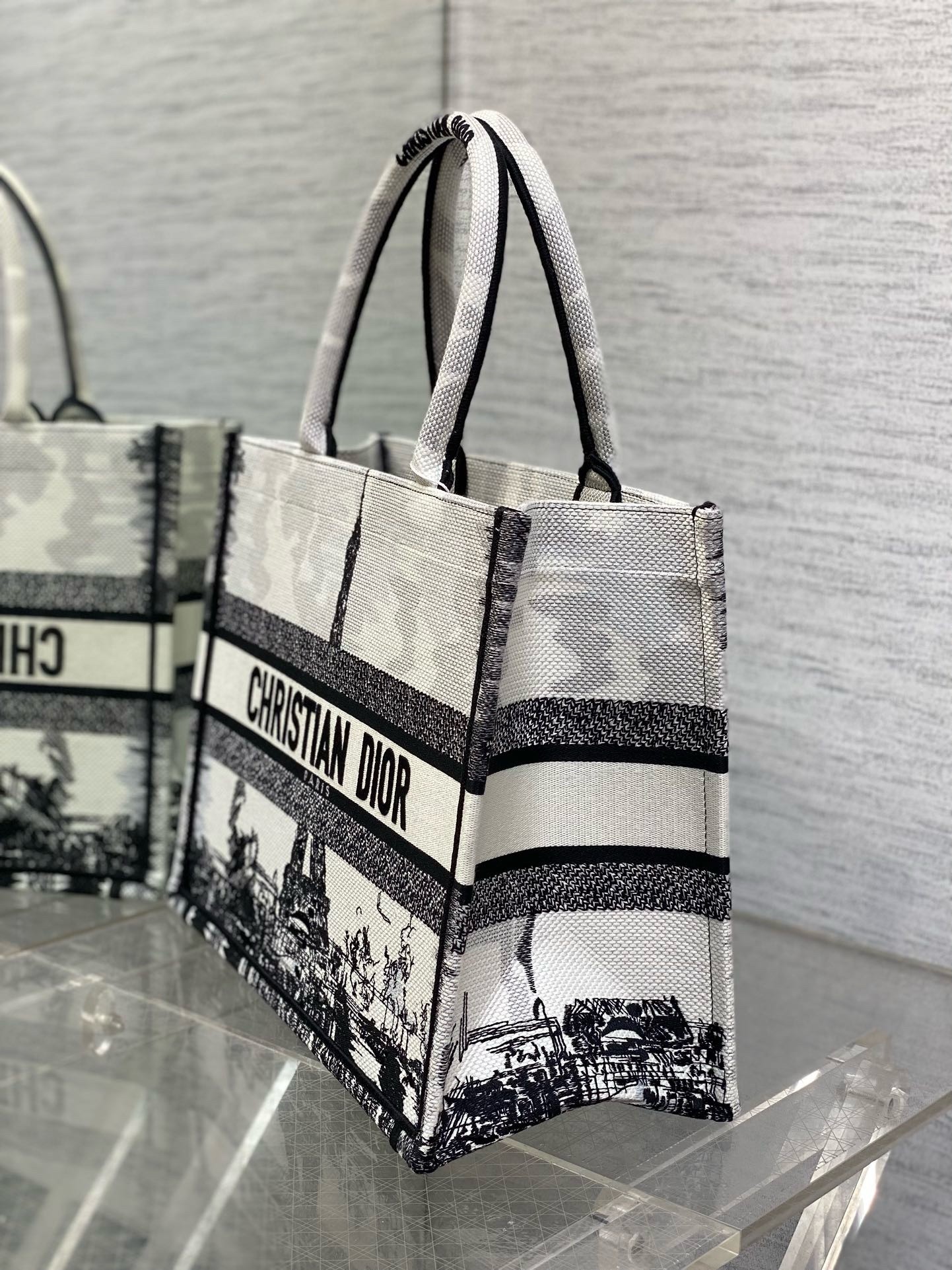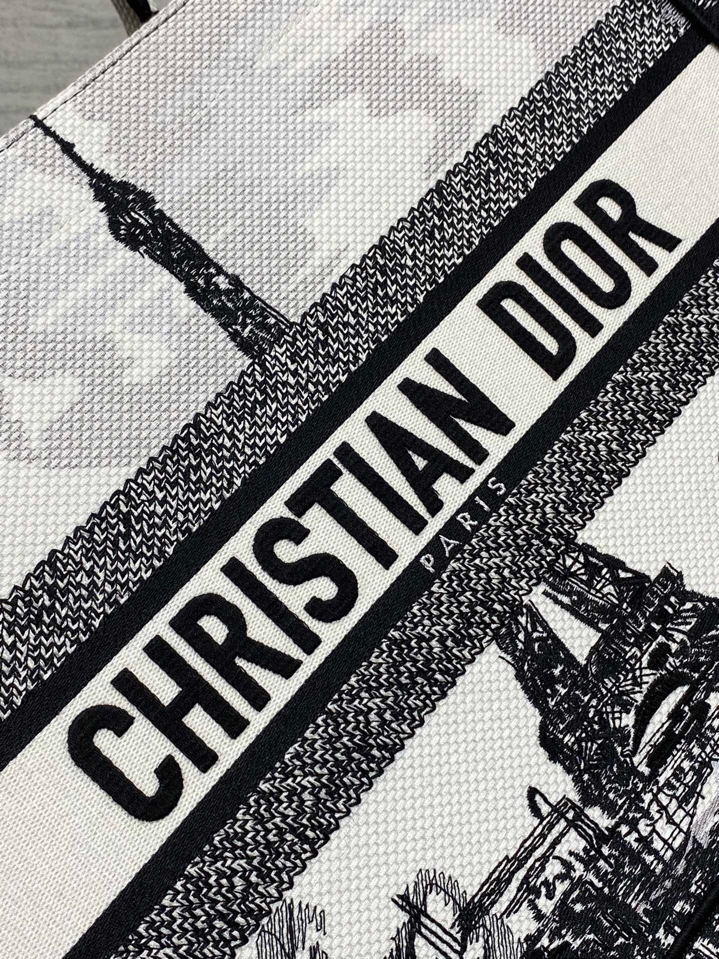 Dior Medium Book Tote Bag in White and Black Paris Embroidery