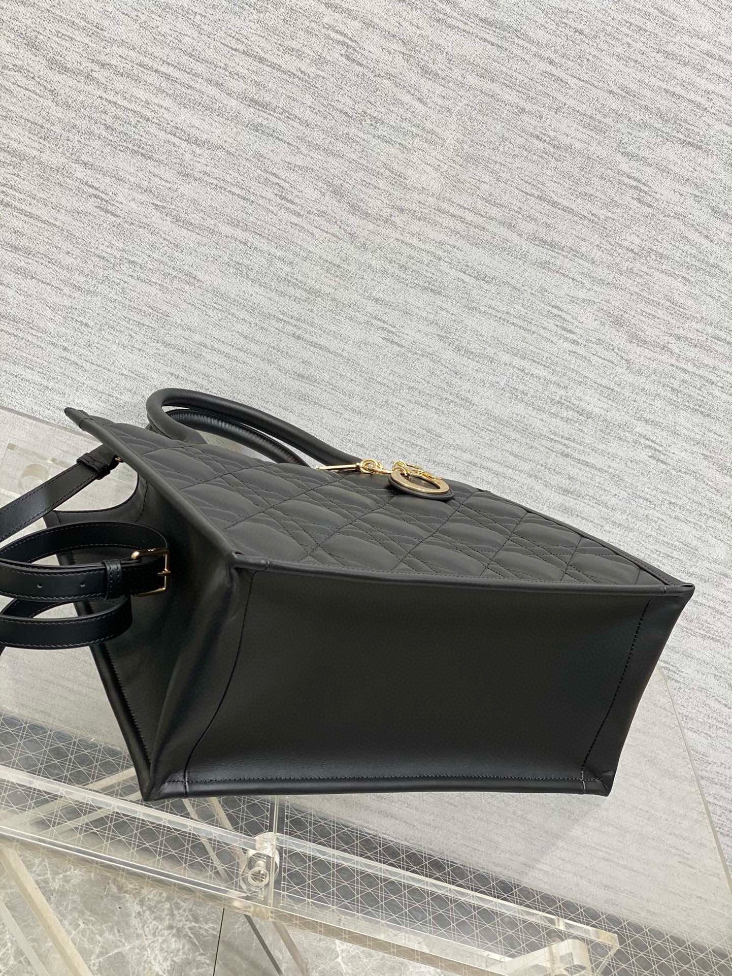 Dior Medium Book Tote Bag with Strap in Black Macrocannage Calfskin