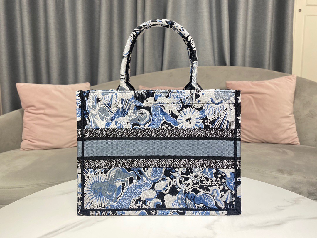 Dior Medium Book Tote In Blue Zodiac Fantastico Embroidery
