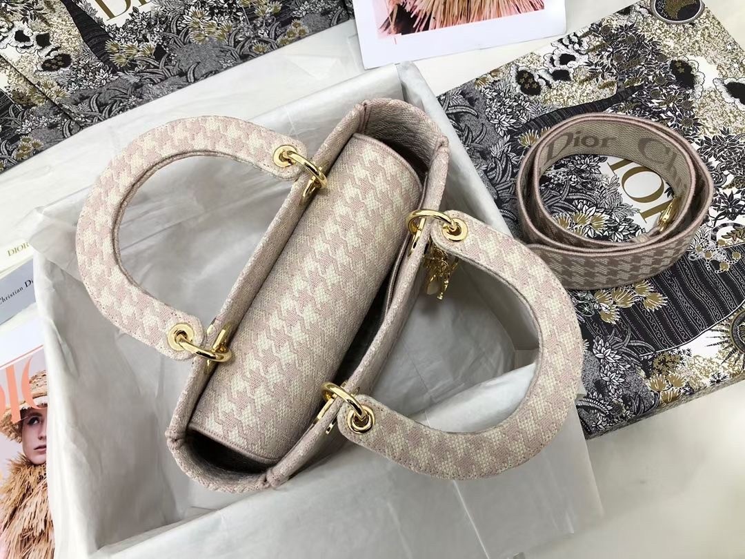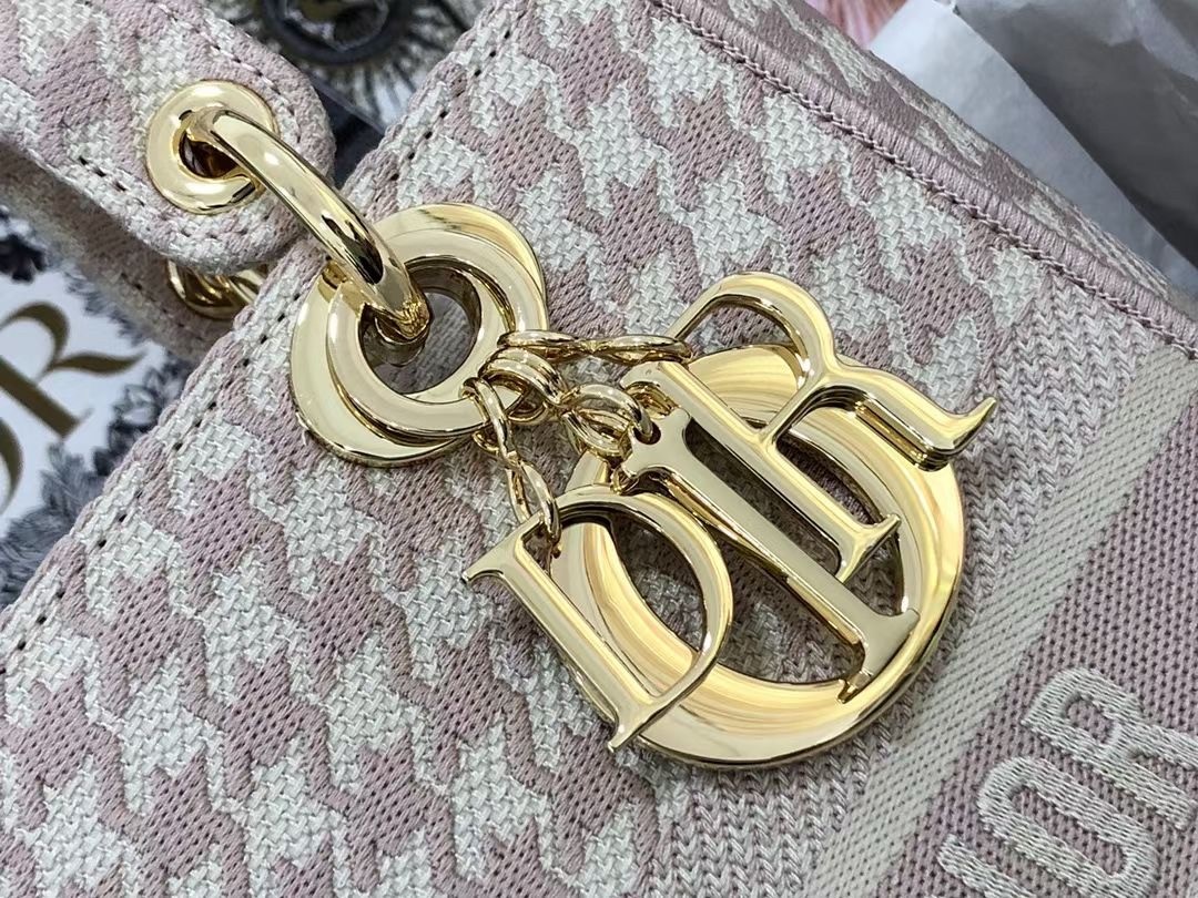 Dior Medium Lady D-Lite Bag In Pink Houndstooth Embroidery
