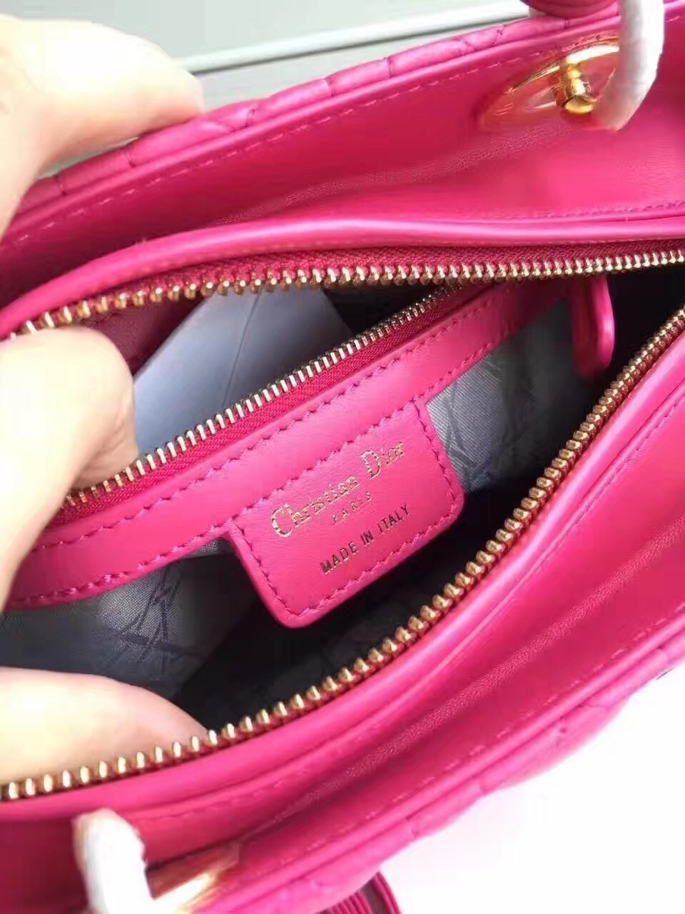 - Dior jacquard textile lining with one zip pocket