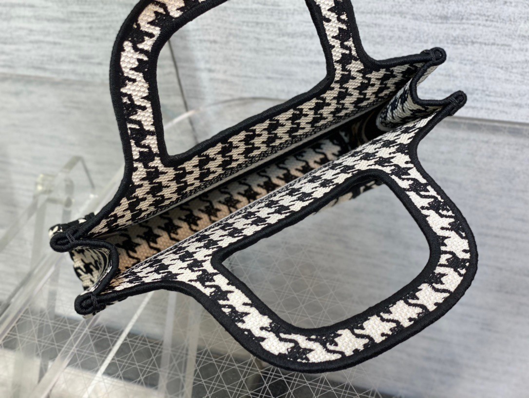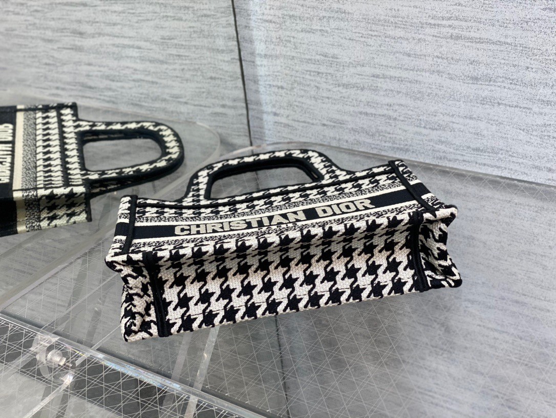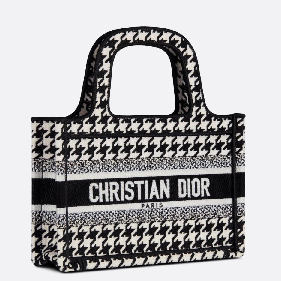 Dior Mini Book Tote Bag In Micro Houndstooth Embroidery