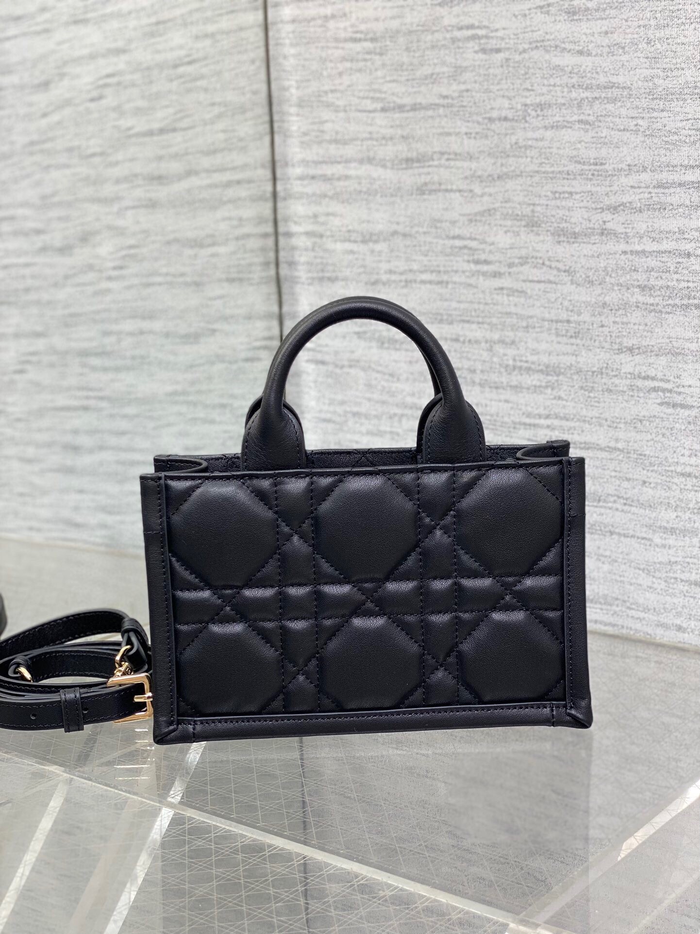 Dior Mini Book Tote Bag with Strap in Black Macrocannage Calfskin