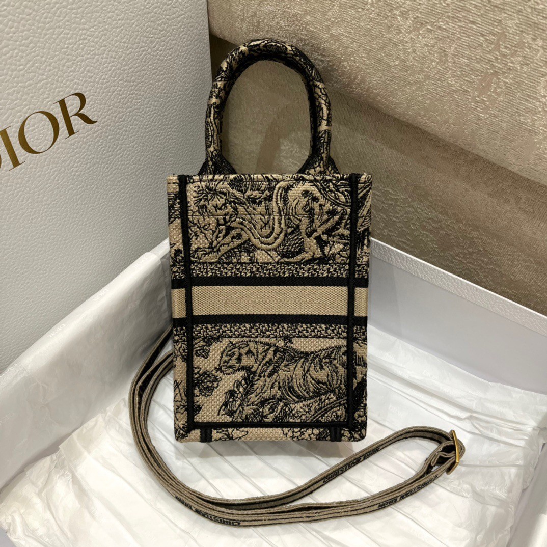 Dior Mini Book Tote Phone Bag In Hazelnut Toile de Jouy Embroidery