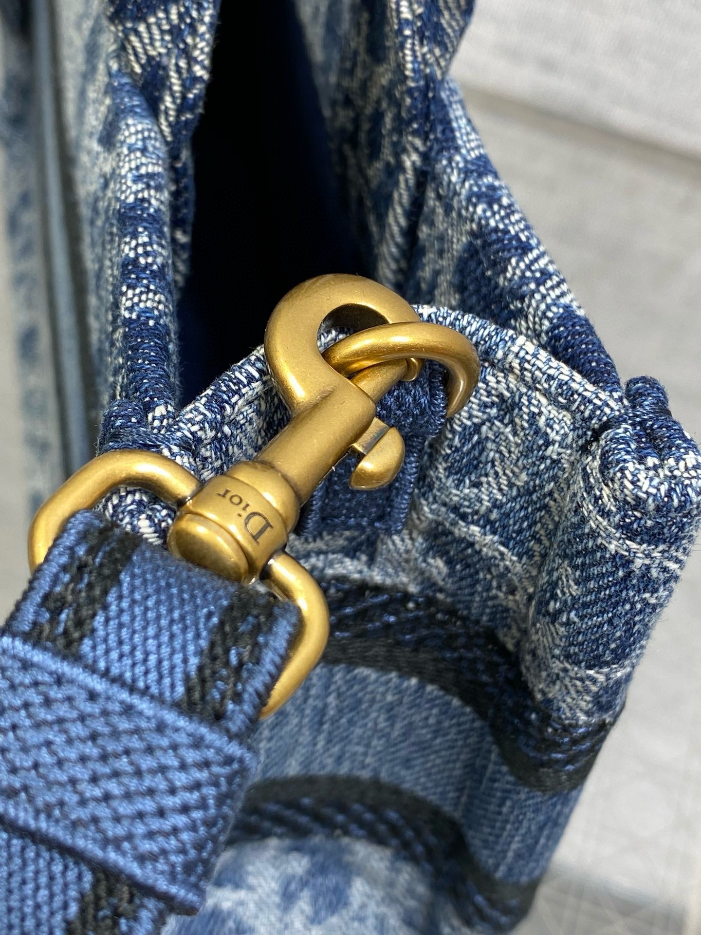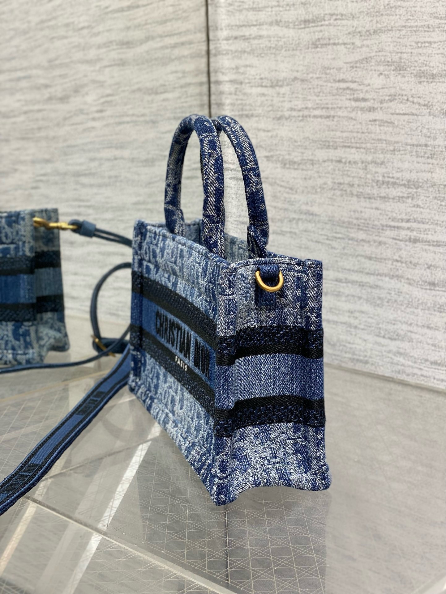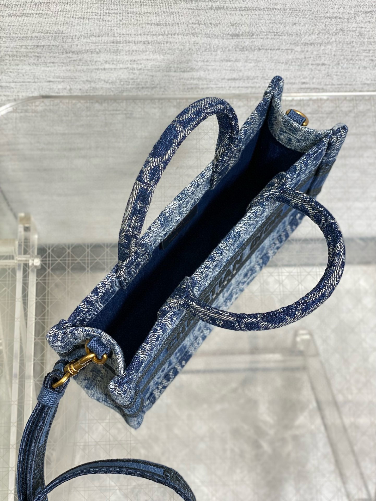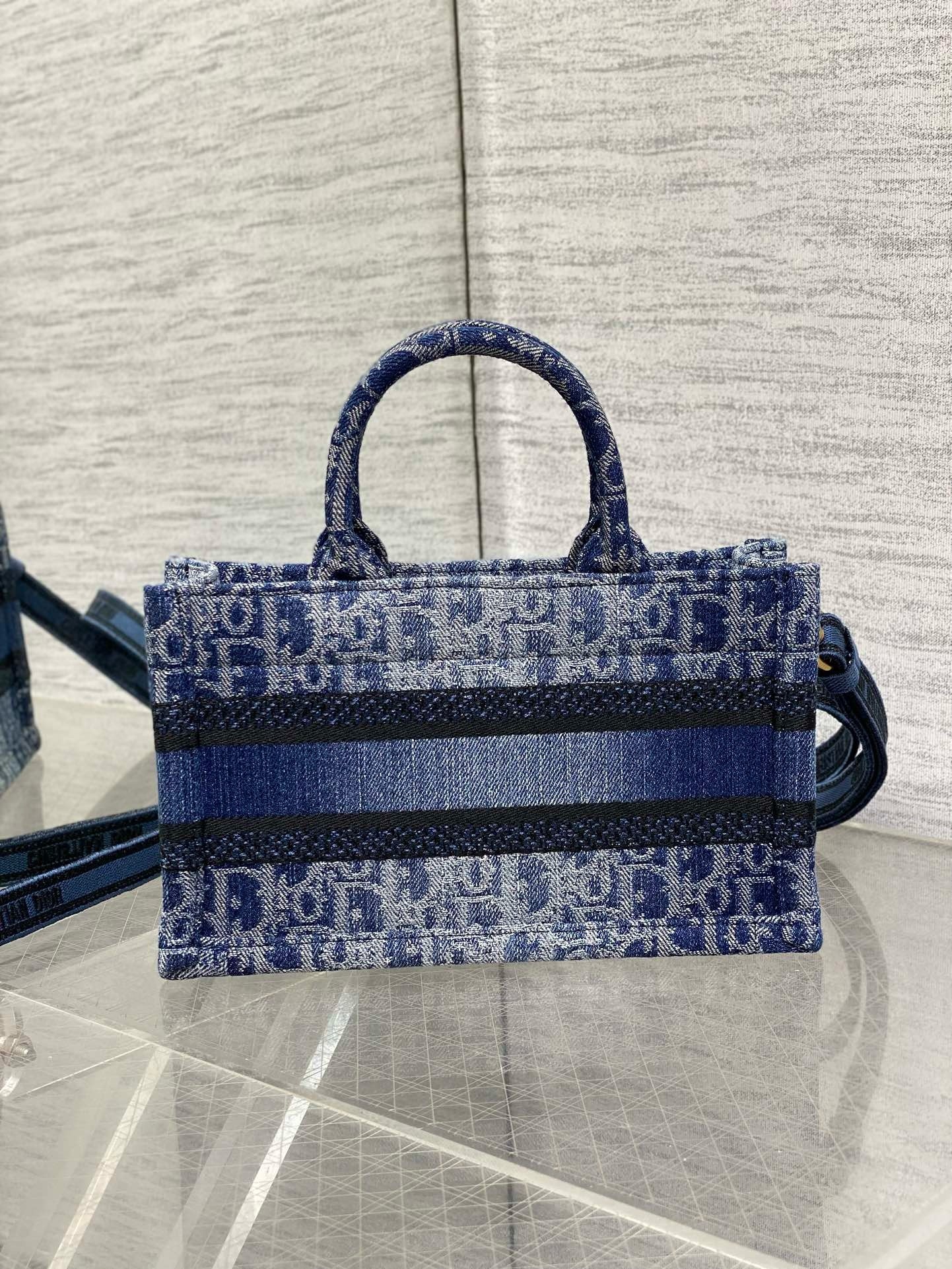 Dior Mini Book Tote with Strap in Blue Denim Oblique Jacquard