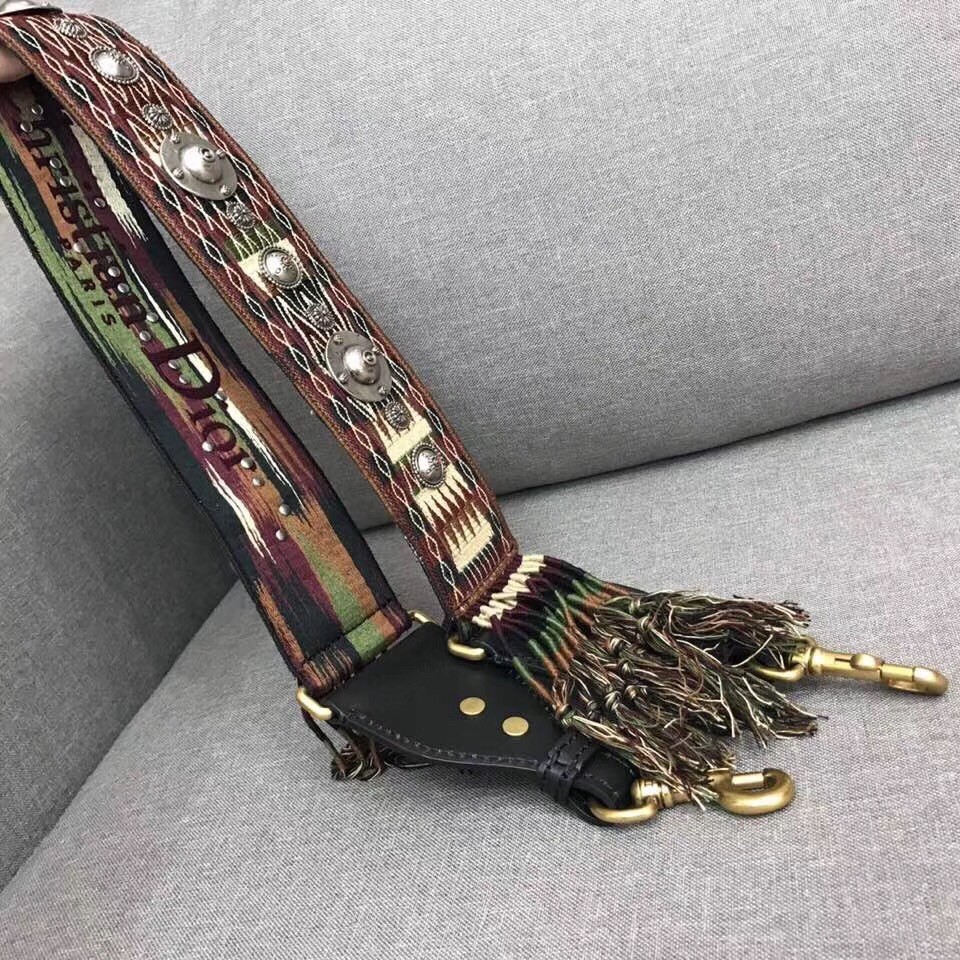 Dior's Fringed shoulder strap in multi-coloured canvas adorned with medallions, calfskin leather details. This strap is a match made in heaven for women who’d like to further add a touch of modernity and panache to their Dior bags!