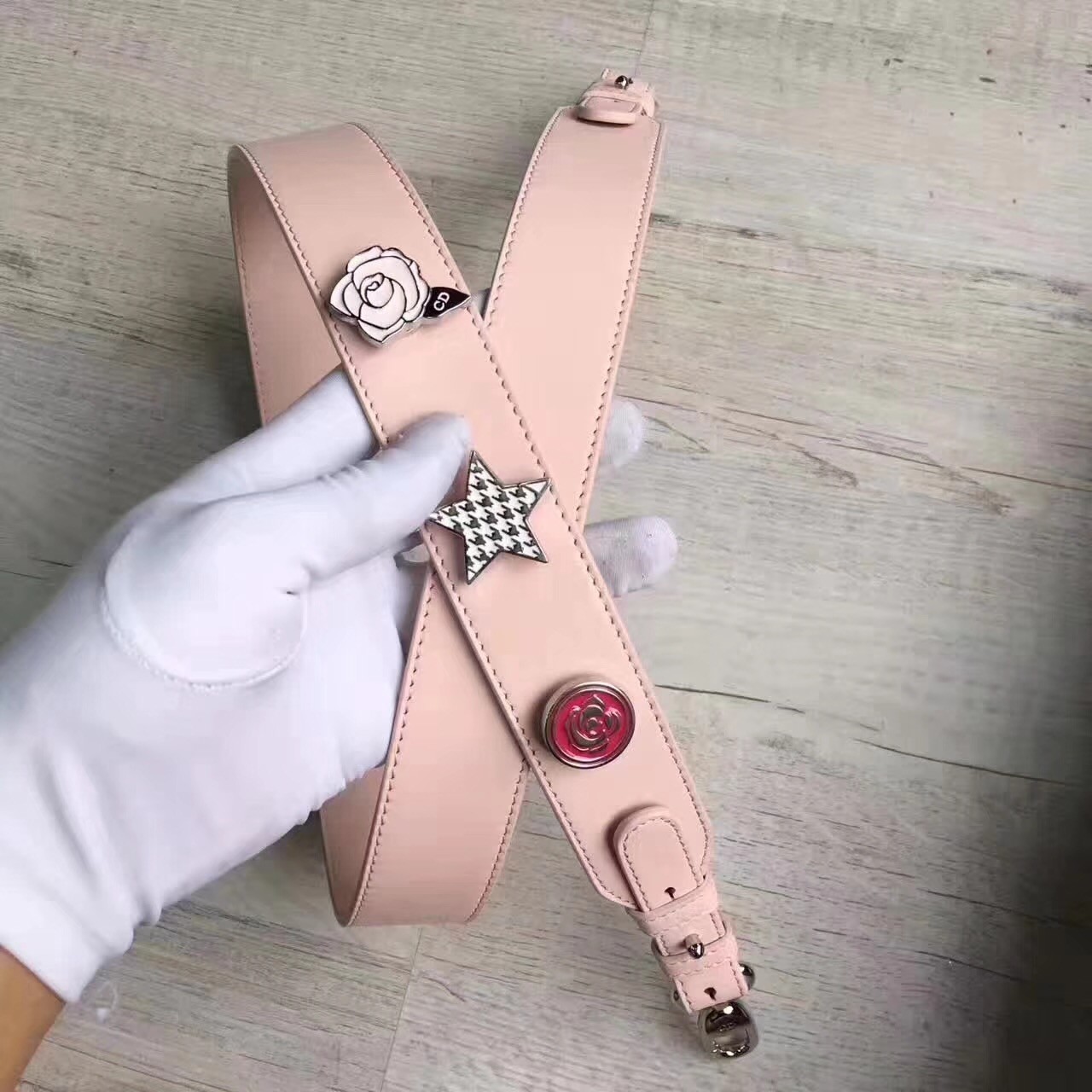 - Wide shoulder strap with Dior badges