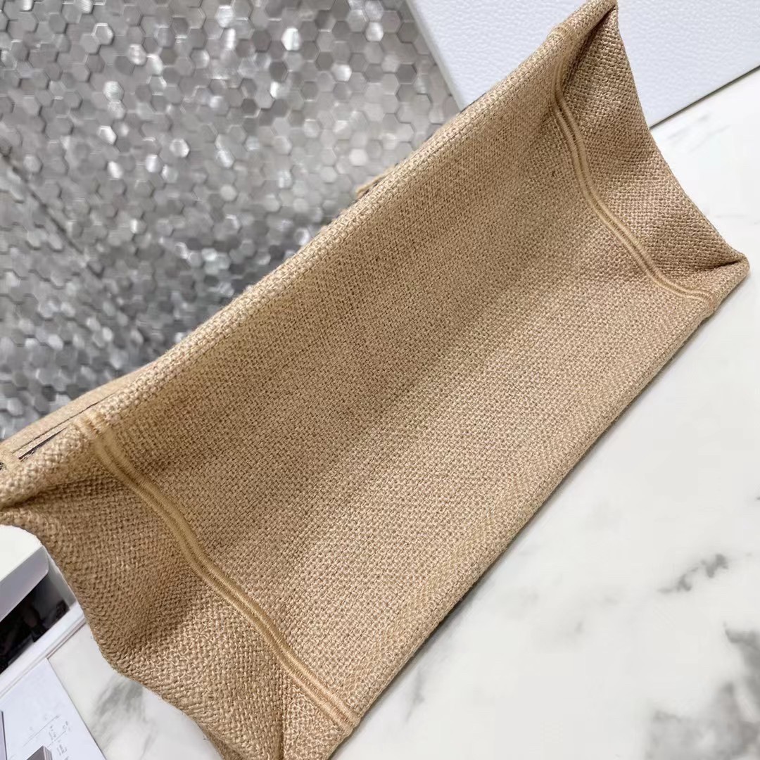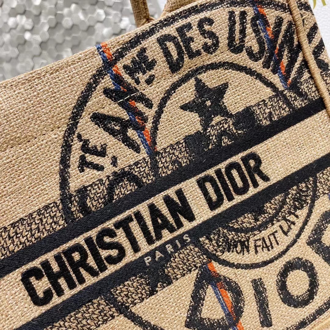 Dior Small Book Tote Bag In Beige Jute Canvas with Dior Union Motif