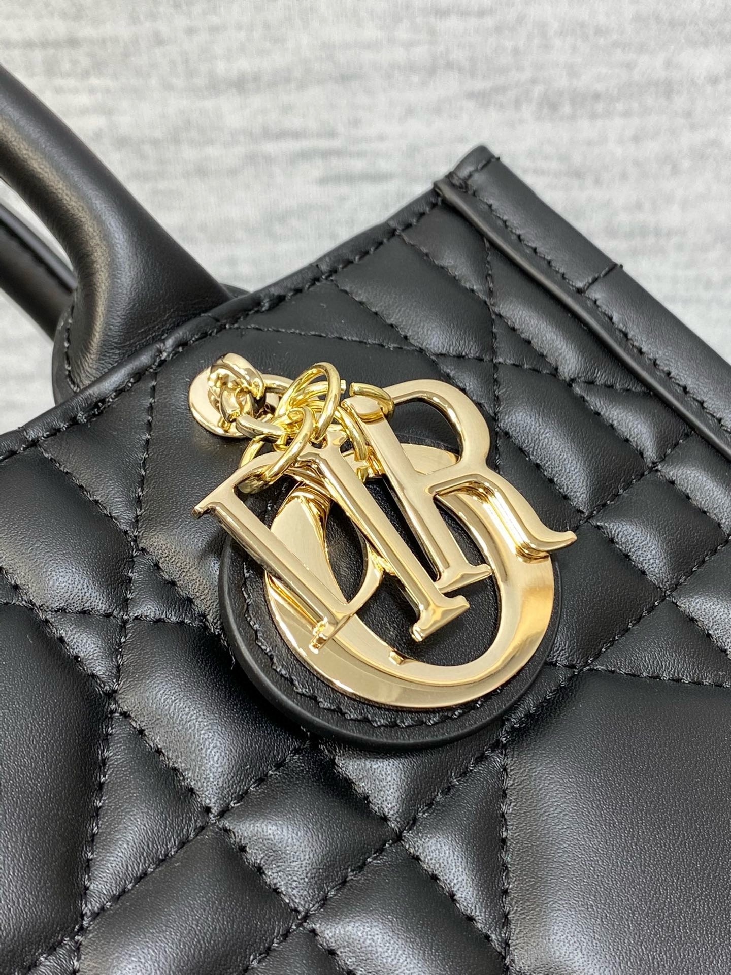 - Pale gold-finish metal D.I.O.R charms