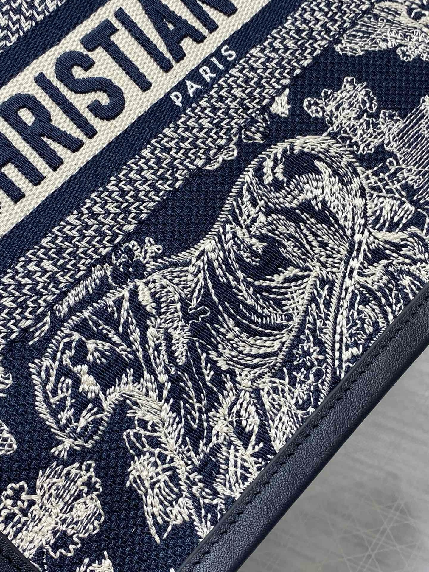 Dior Small Book Tote Bag with Strap in Toile de Jouy Reverse Embroidery and Blue Calfskin