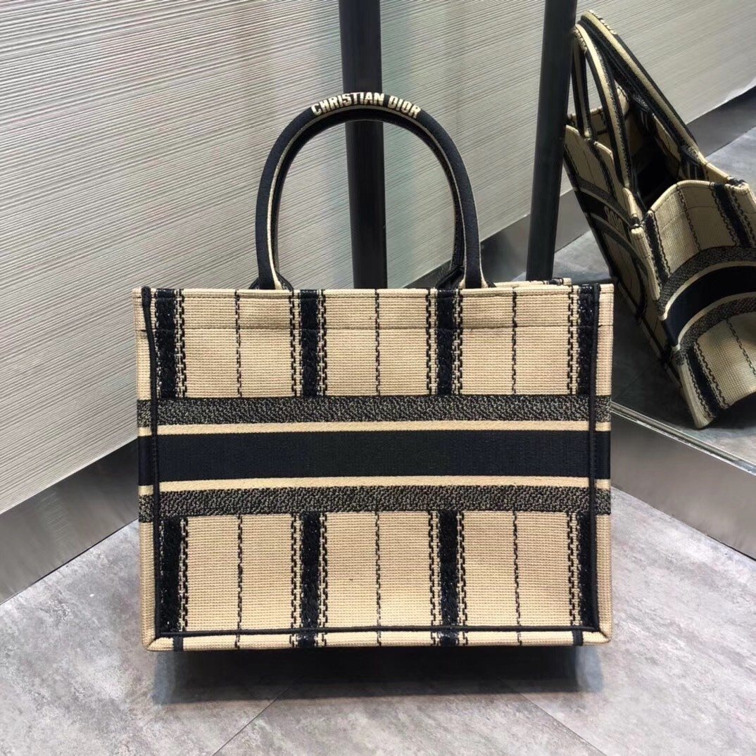 Dior Small Book Tote In Black and Beige Bayadère Embroidered