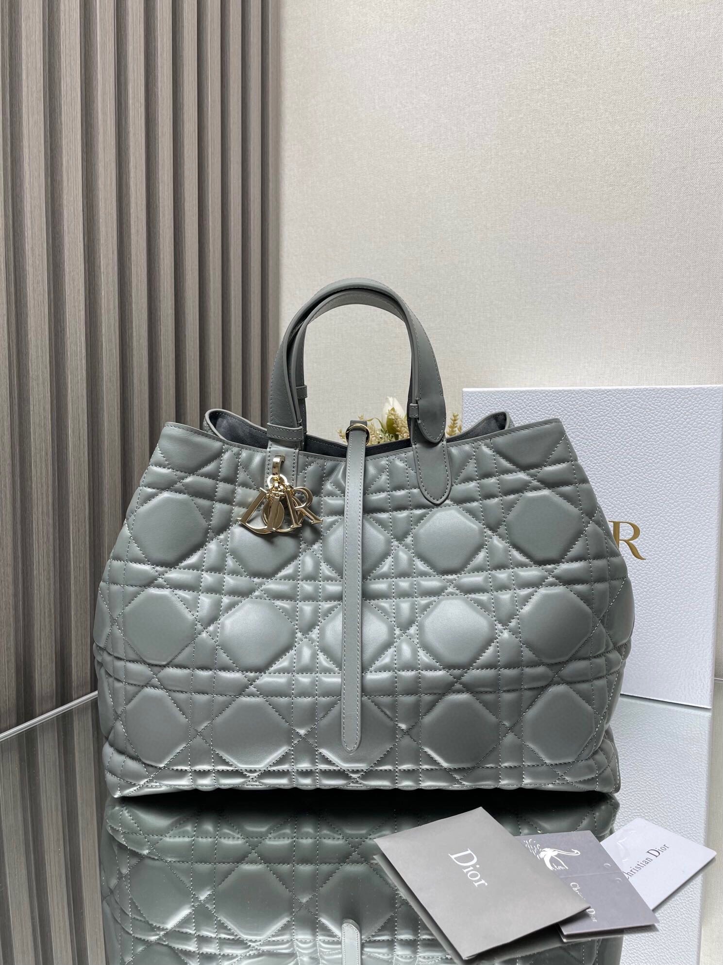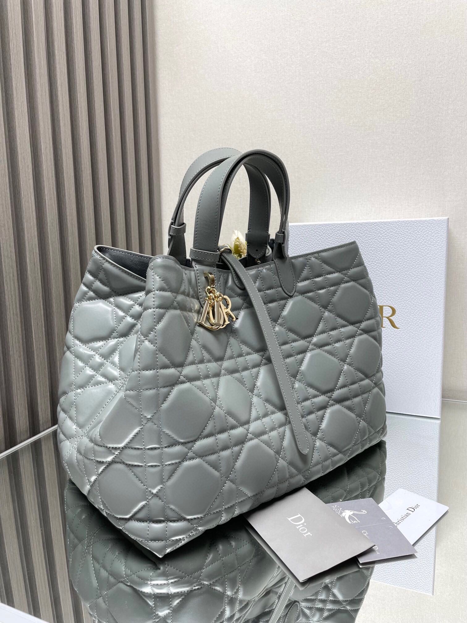 Dior Toujours Large Bag in Grey Macrocannage Calfskin