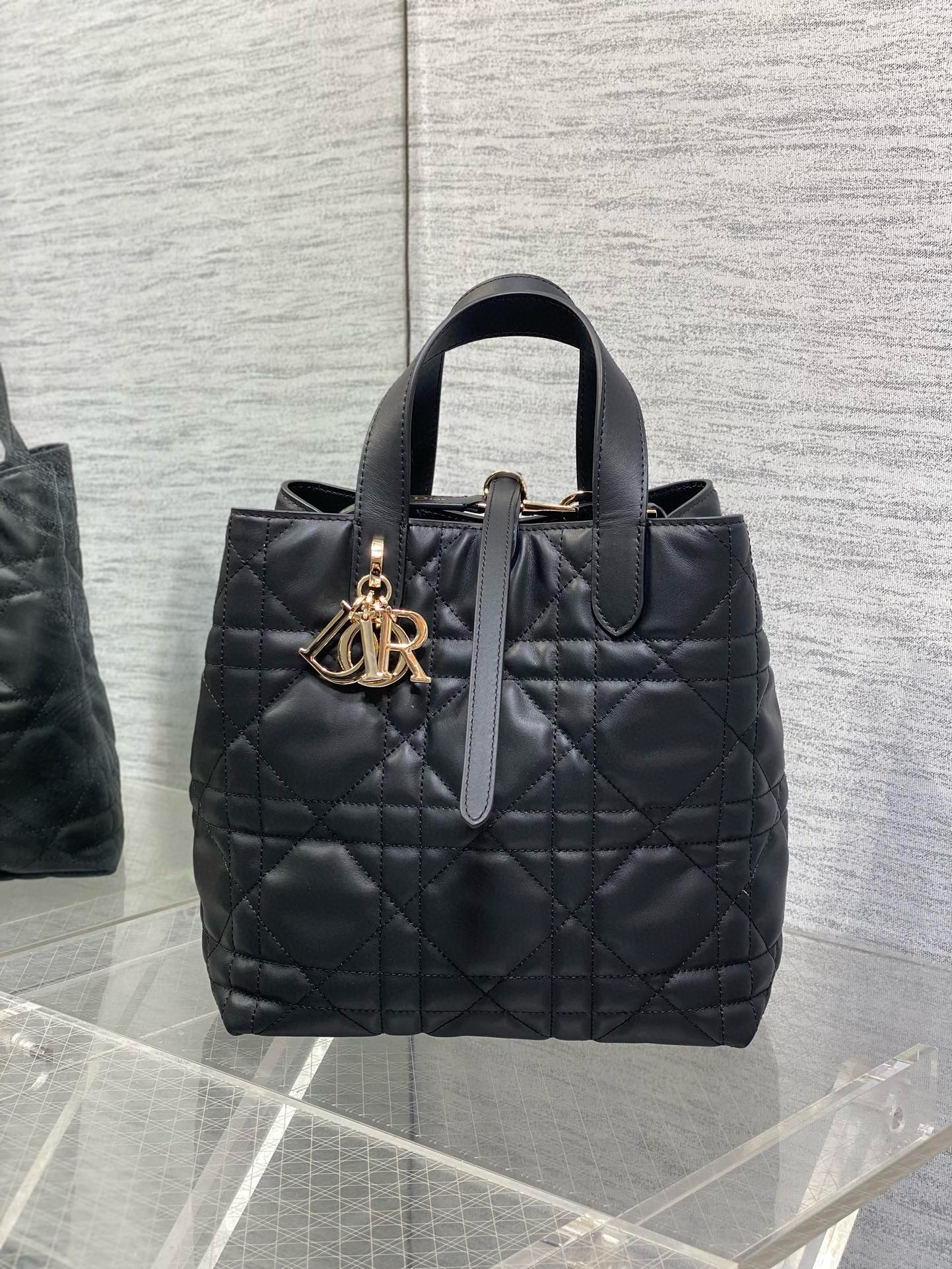 Dior Toujours Vertical Medium Tote Bag in Black Macrocannage Calfskin