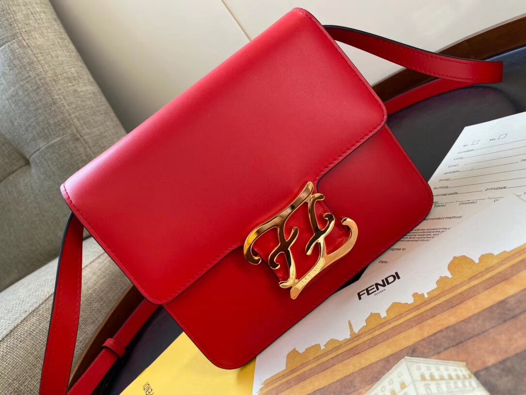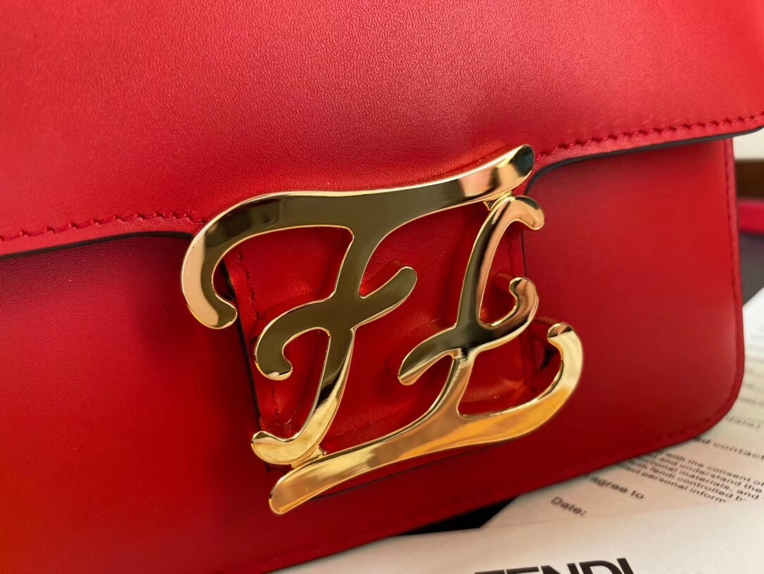Fendi Karligraphy Bag In Red Calfskin Leather