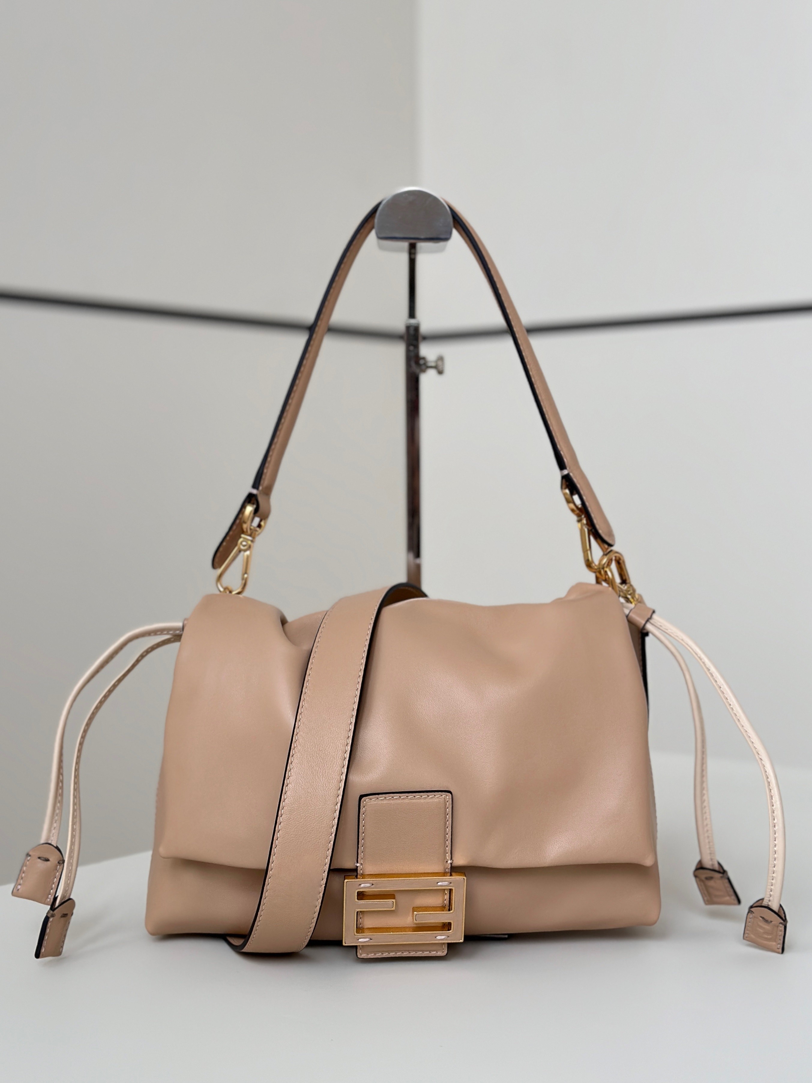 - Metal FF clasp with tone-on-tone leather insert