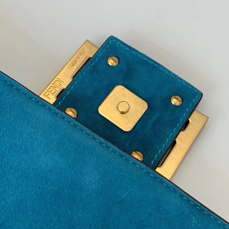 Fendi Medium Baguette Bag In Blue Suede Leather