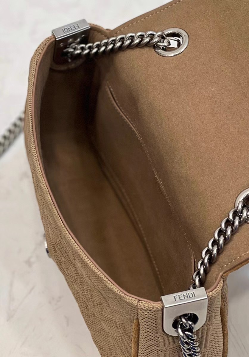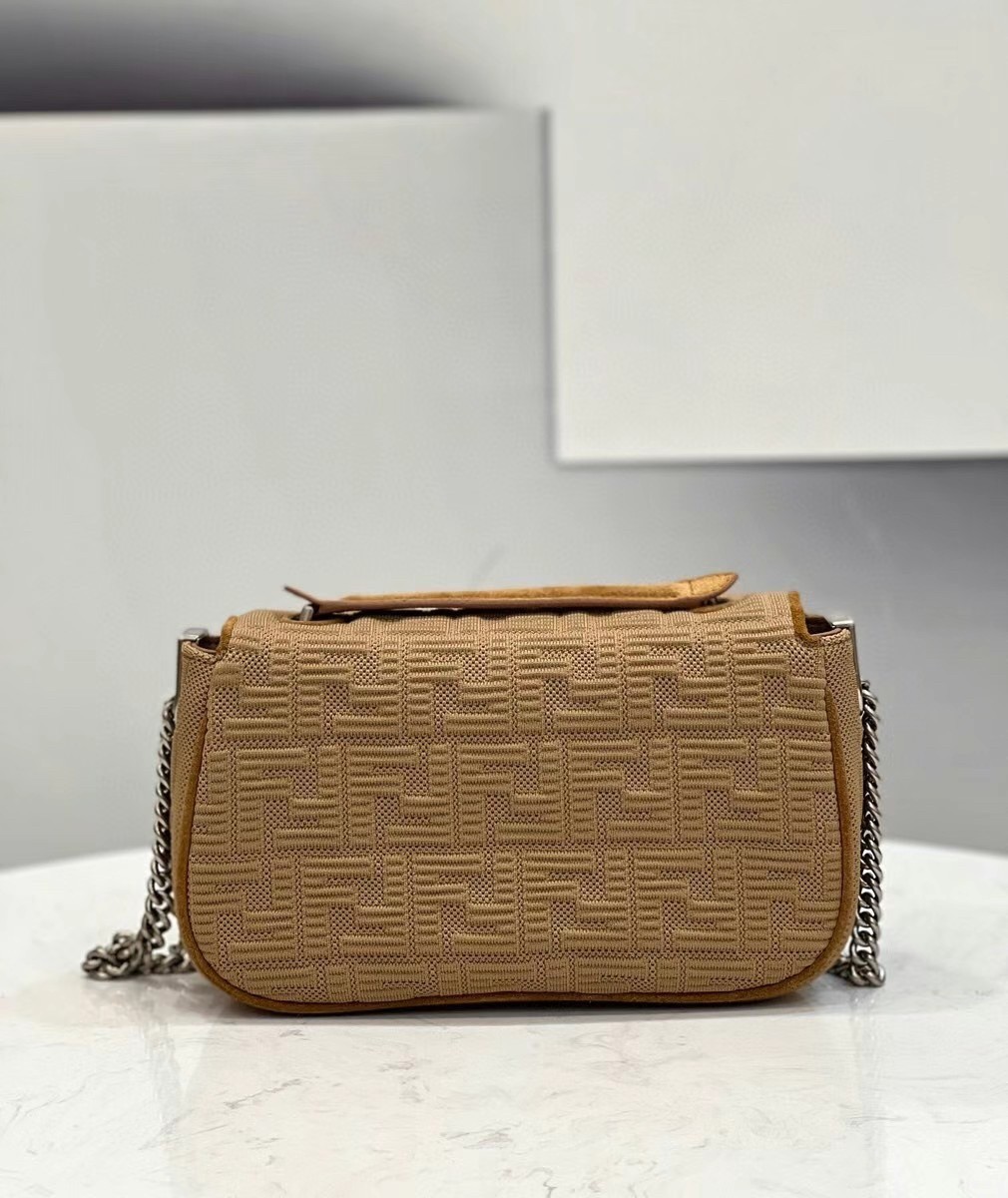 Fendi Midi Baguette Chain Bag In Beige FF Fabric