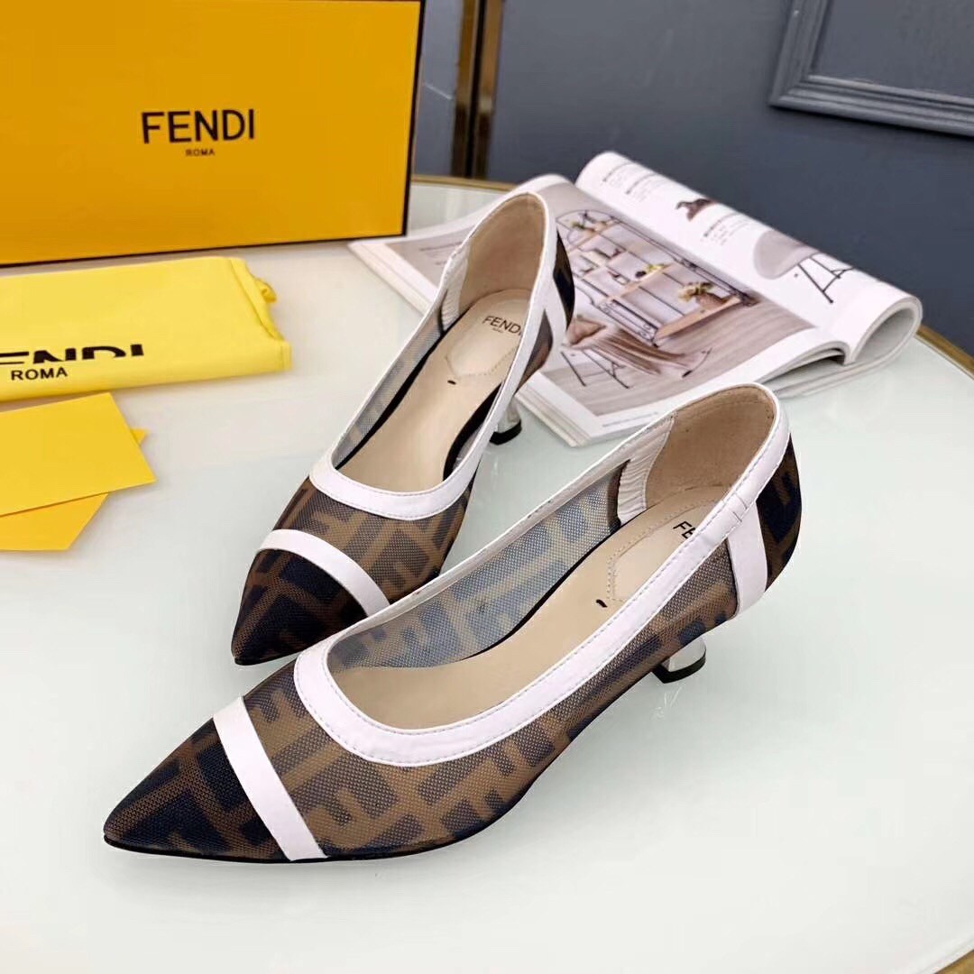 Fendi continues to maintain its position at the forefront of the luxury fashion industry. ‘Heritage style with a modern twist’ is how they refer to it now. Made from calf leather, these pumps have a pointed toe, a low heel, and a mesh upper featuring an allover logo print.