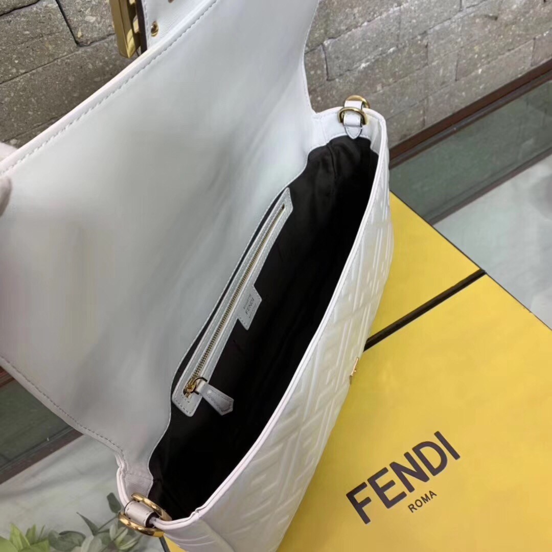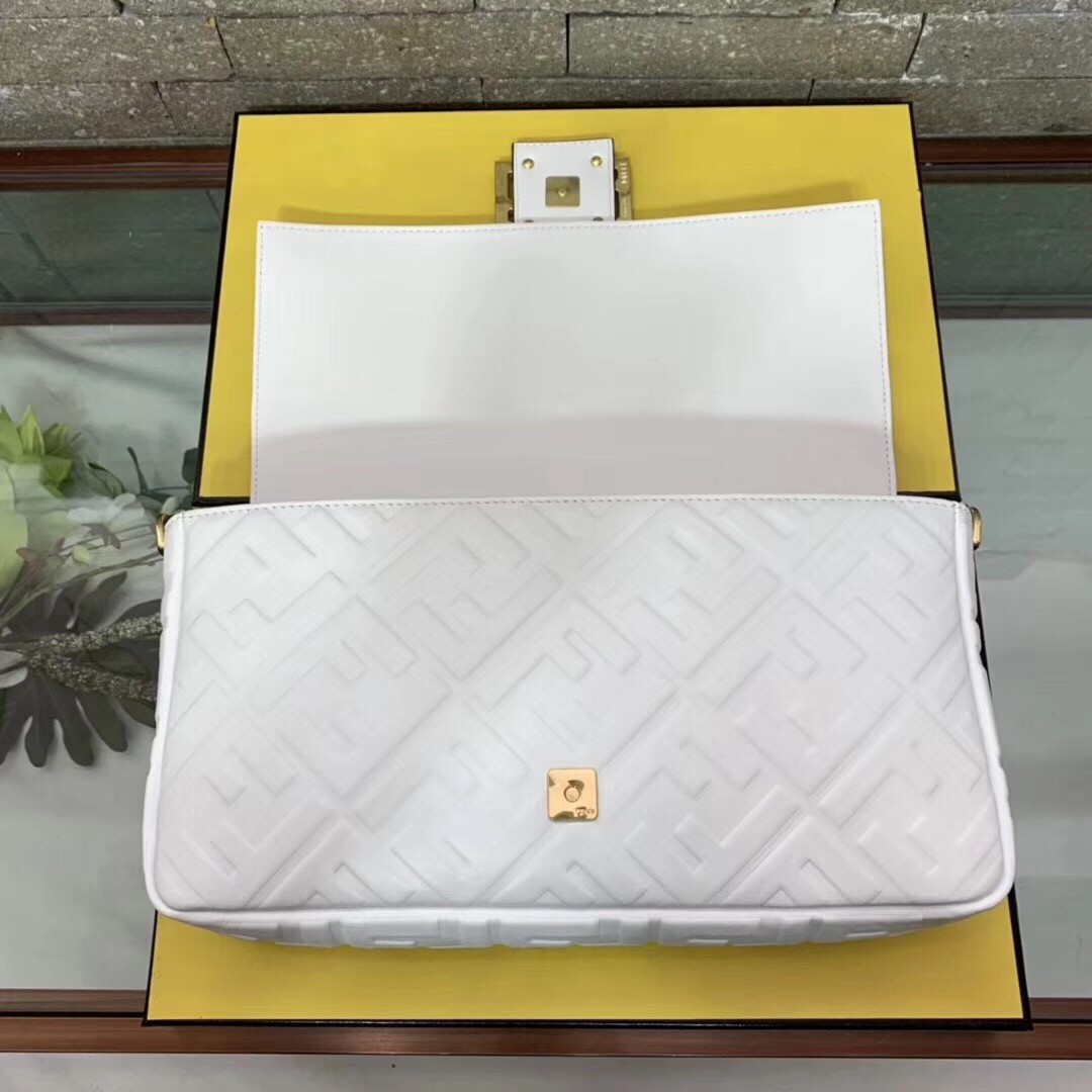 Fendi White FF Motif Large Baguette Bag