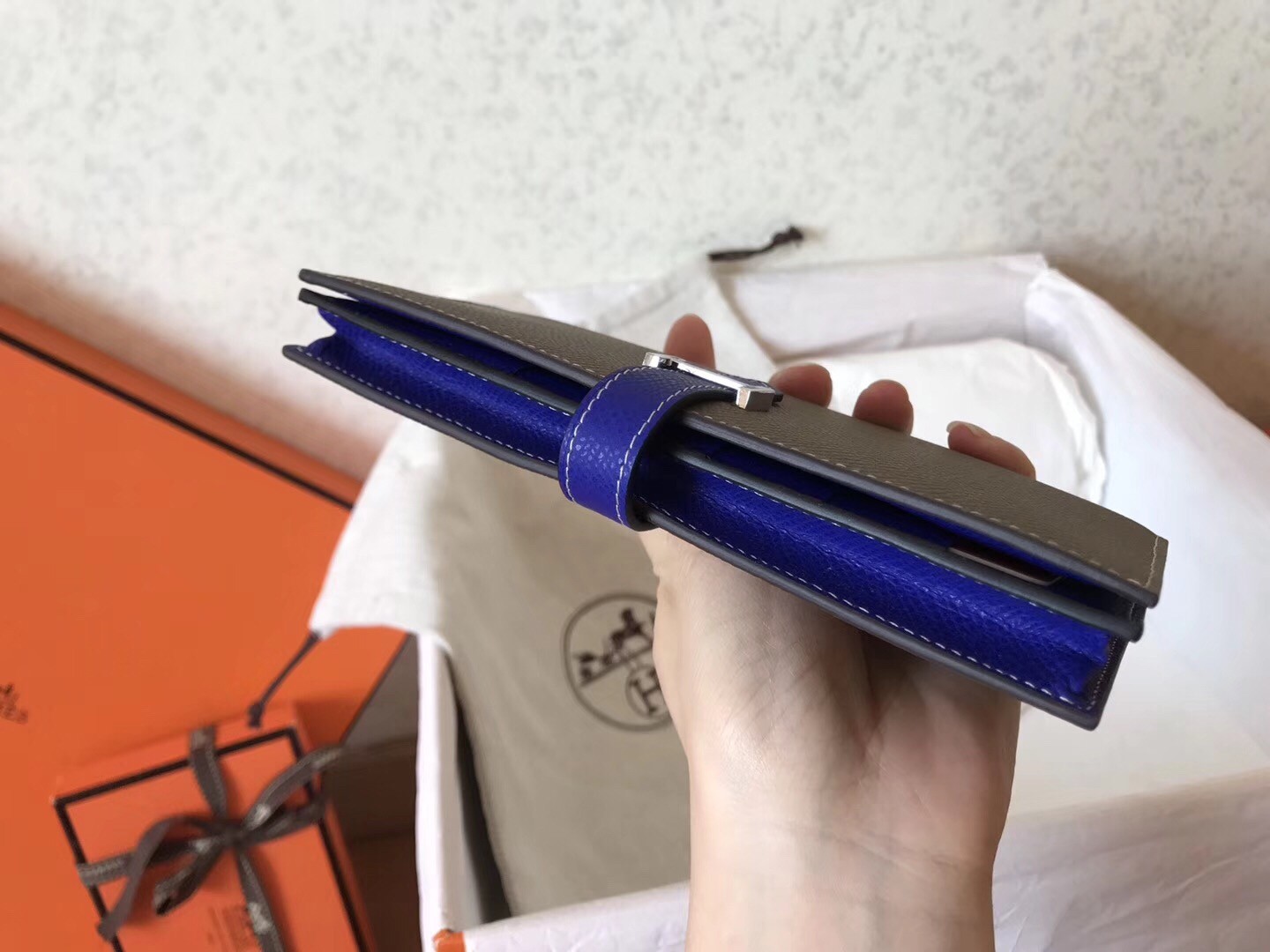 Hermes Bi-Color Epsom Bearn Wallet Taupe/Electric Blue