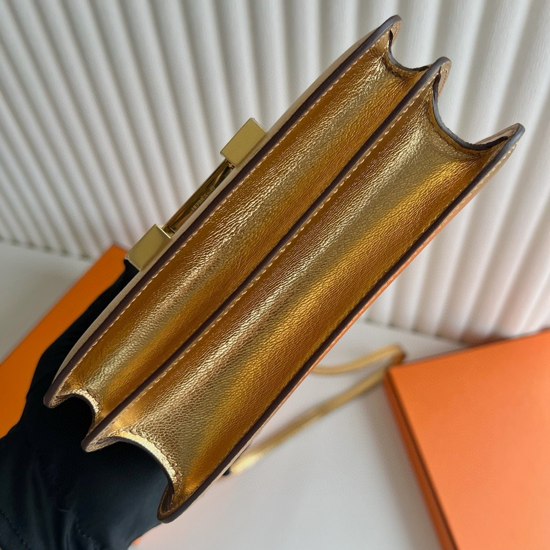 Hermes Constance 1-18 Mirror Bag in Dore Metallic Chevre Mysore Leather
