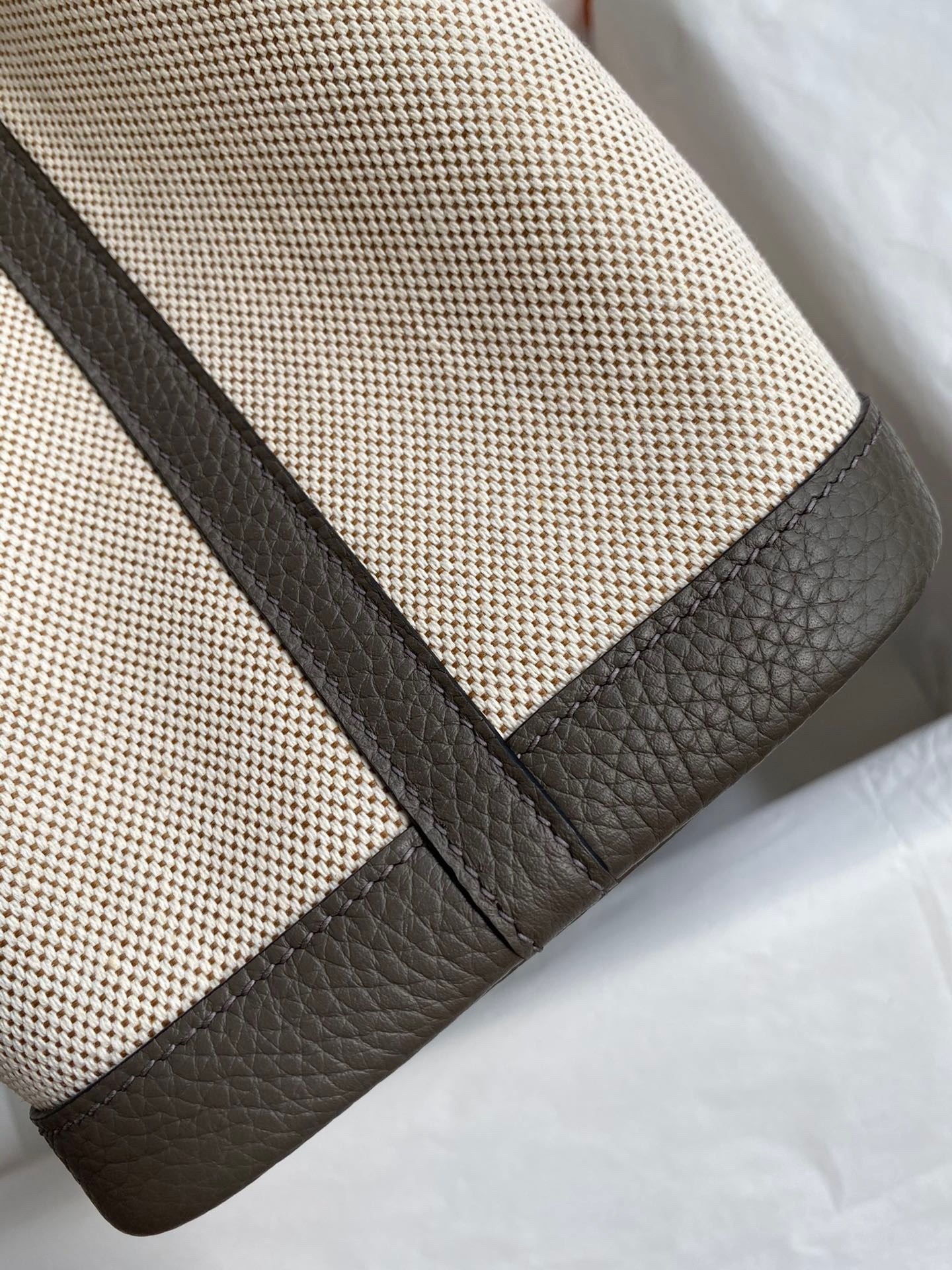Hermes Garden Party 30 Handmade Bag in Toile and Etain Leather