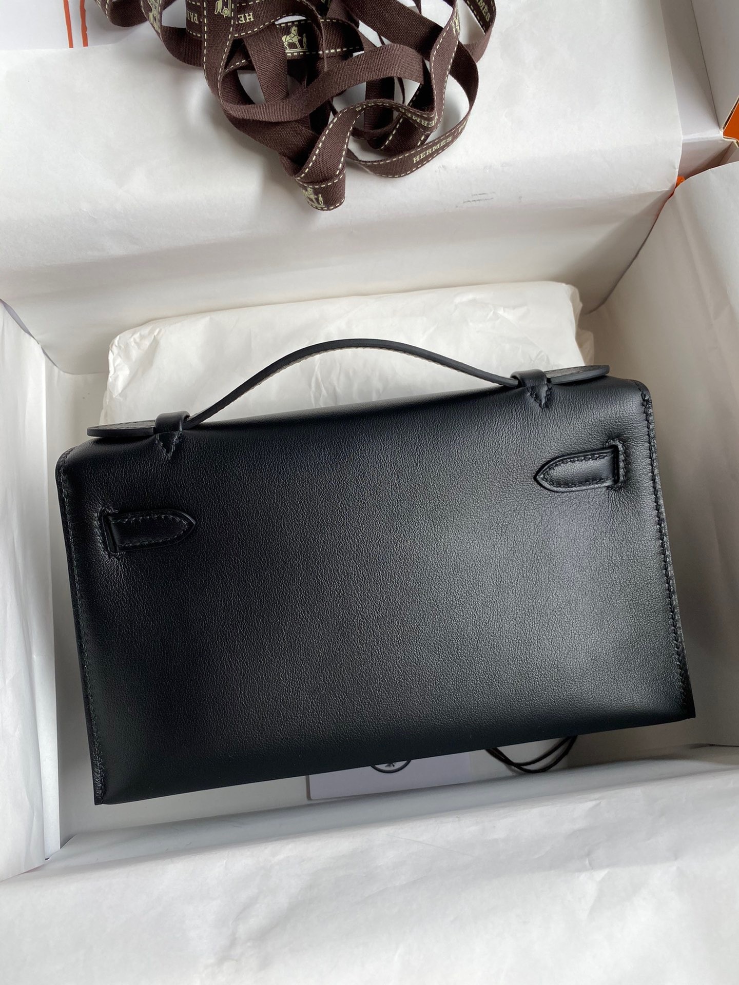Hermes Kelly Pochette Handmade Bag In Black Swift Calfskin